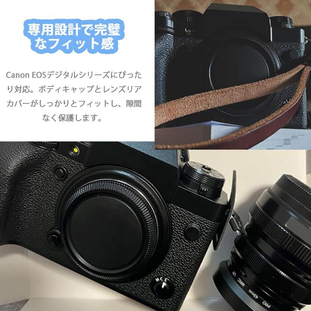 【専用設計で完璧なフィット感】Canon EOSデジタルシリーズにぴったり対応。ボディキャップとレンズリアカバーがしっかりとフィットし、隙間なく保護します。