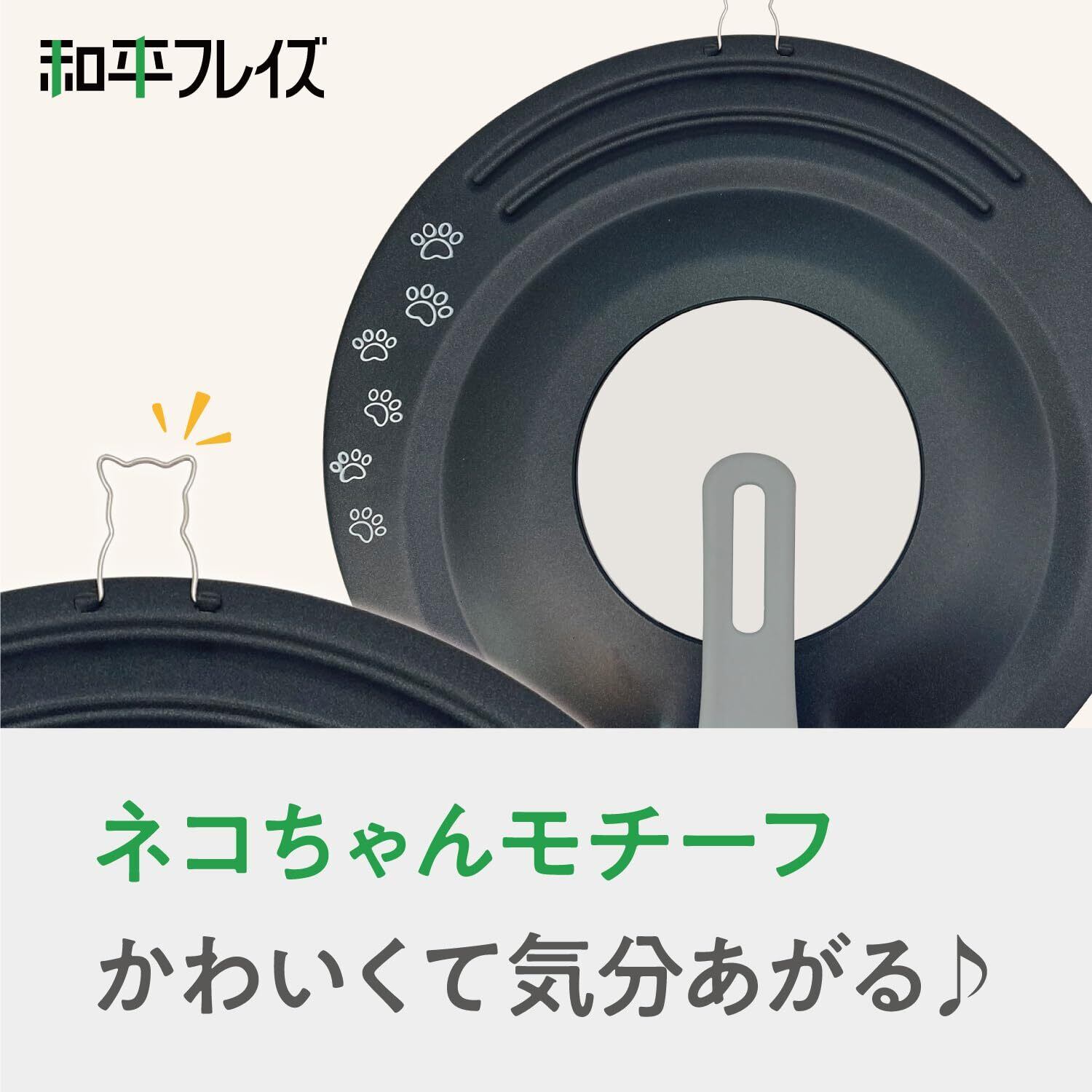 猫好きにぴったりのフライパンです。可愛らしい猫モチーフが料理をより楽しく演出してくれます。3サイズ兼用だから違うサイズの鍋・フライパンに使いまわしできます。スタンド式で調理中の一時置きにも便利です。ふっ素樹脂加工で汚れを落としやすいのも嬉しいポイント。毎日の料理に好きなテイストを取り入れて、楽しみながら美味しいお料理を作りましょう!