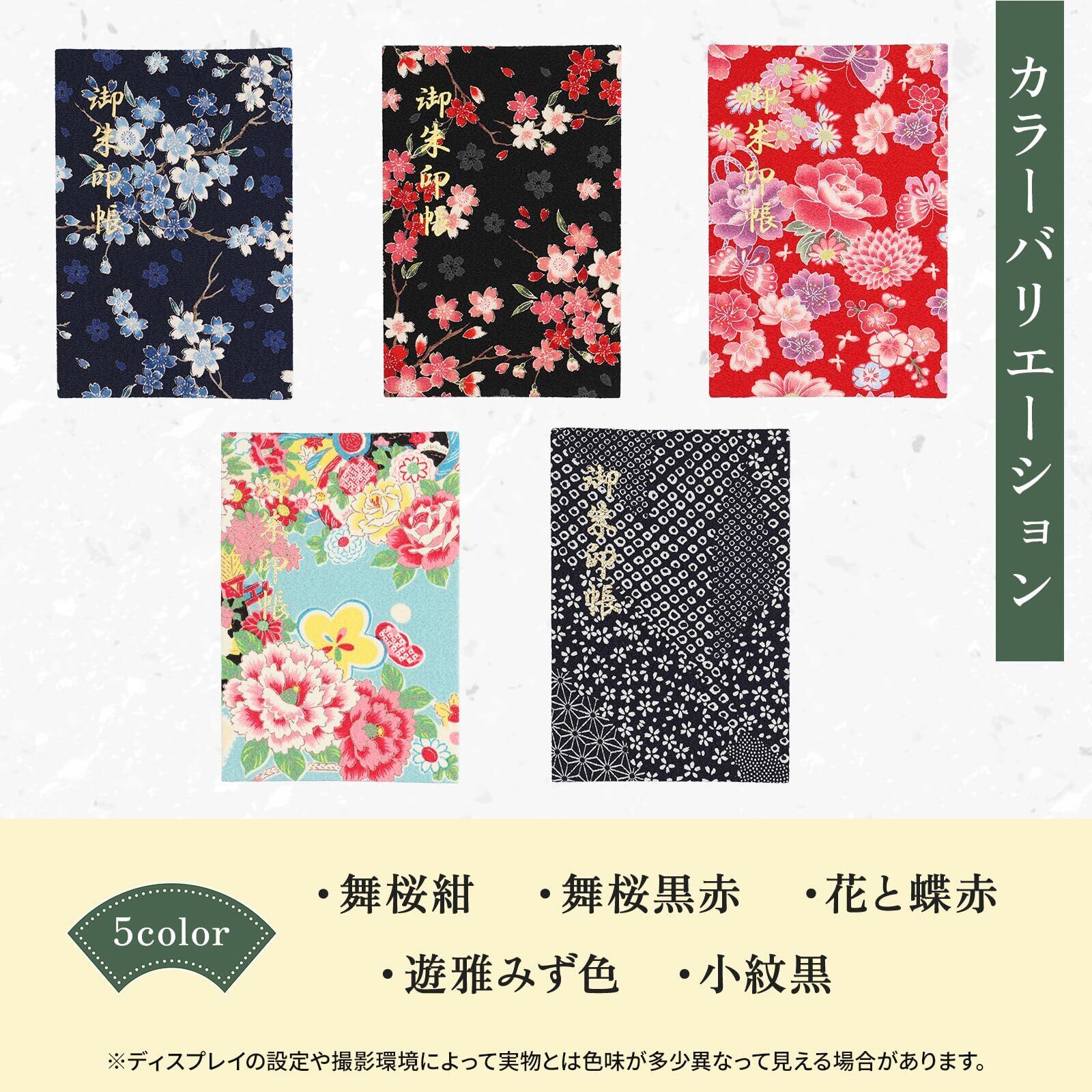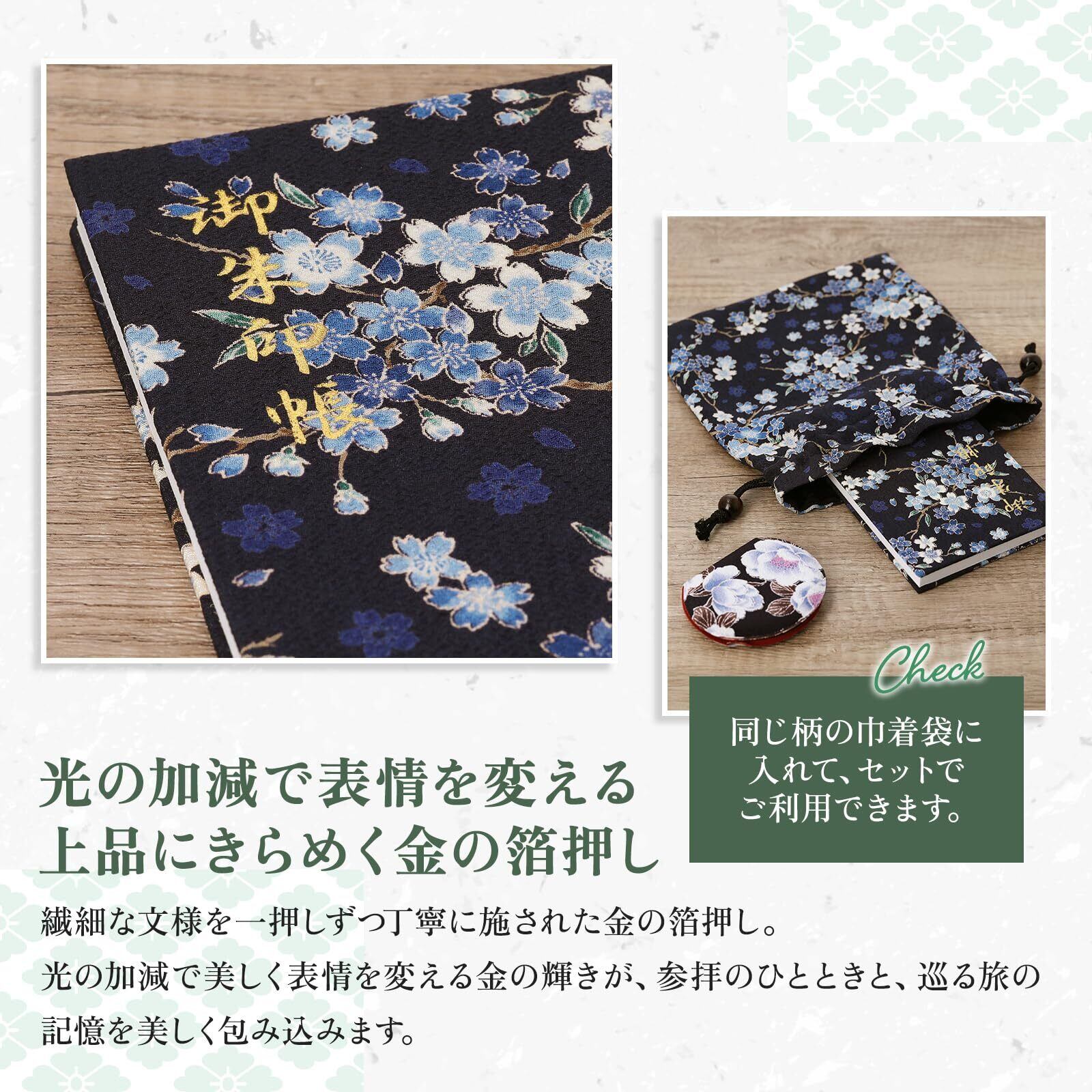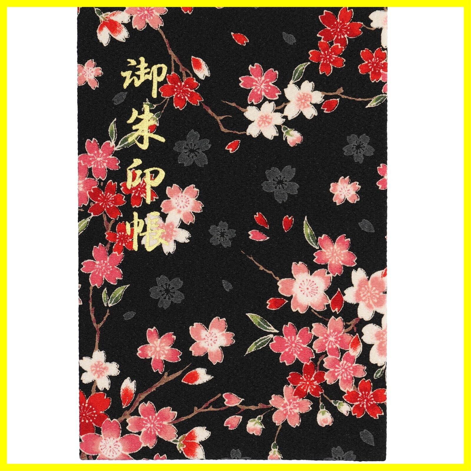 和柄 御朱印帳 集印帳 16×10.9cm ちりめん 綸子 蛇腹式 24折48面 (舞桜黒)