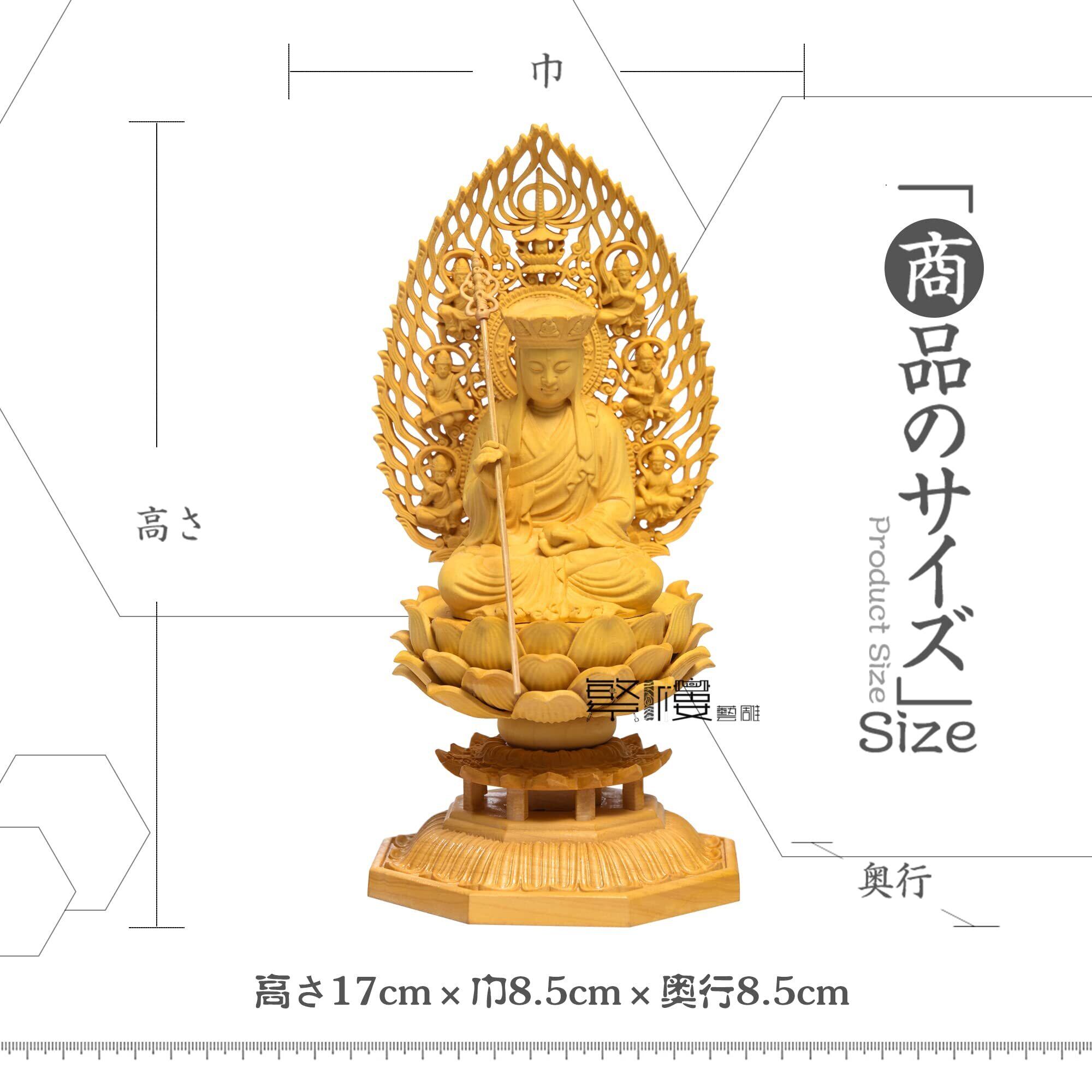 繁樓藝雕 仏像 地蔵菩薩 仏壇仏像 木彫り 置物 柘植の木 飛天光背 八角台座 祈る 厄除け(高さ17cm×巾8.5cm×奥行8.5cm)