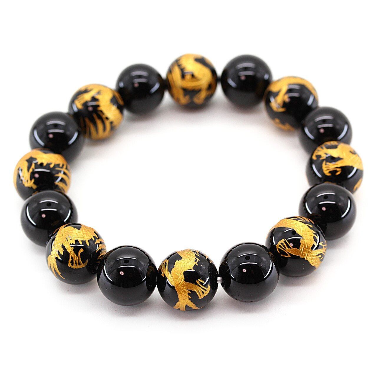 メンズ:内周約16cm(伸縮します) オニキス12mm 金彫り五本爪皇帝龍オニキス12mm