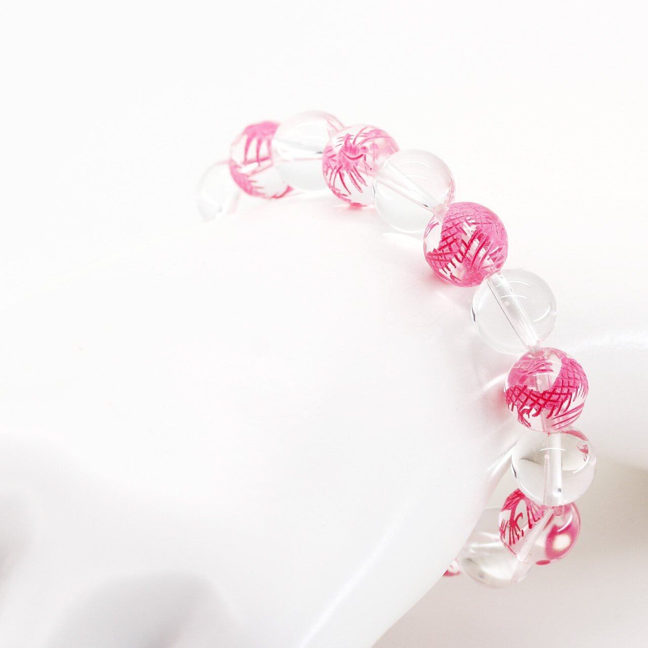 レディース:内周約14cm(伸縮します)水晶10mm ピンク彫り五本爪皇帝龍水晶10mm