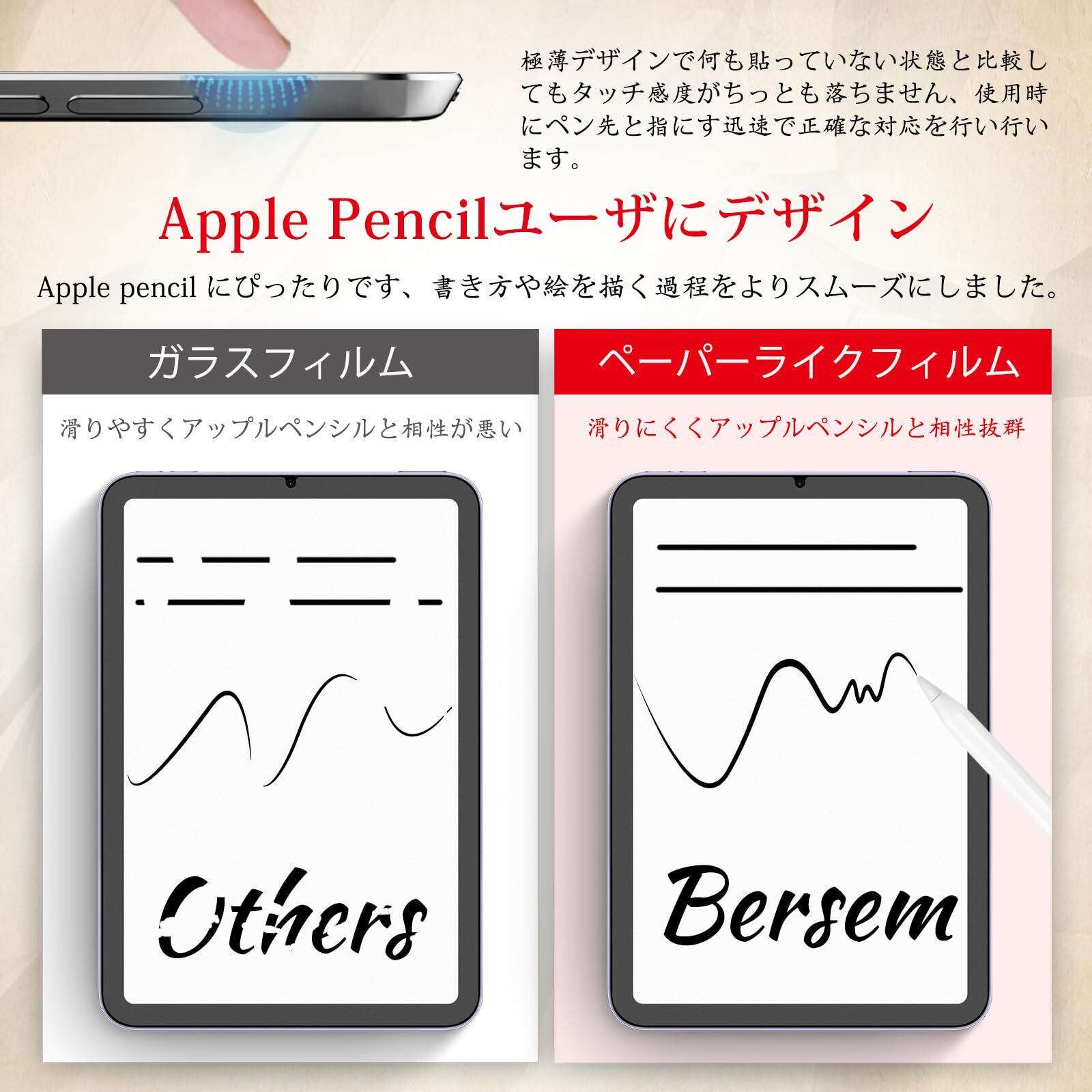 BERSEM【2枚セット】iPad Mini7 (A17Pro) 2024/iPad Mini6 (第6世代) 2021用 ペーパーライクフィルム ミニ6 保護フィルム【紙のような描き心地】【反射防止アンチグレア】【指紋防止】【気泡防止】【Apple Pencil対応】