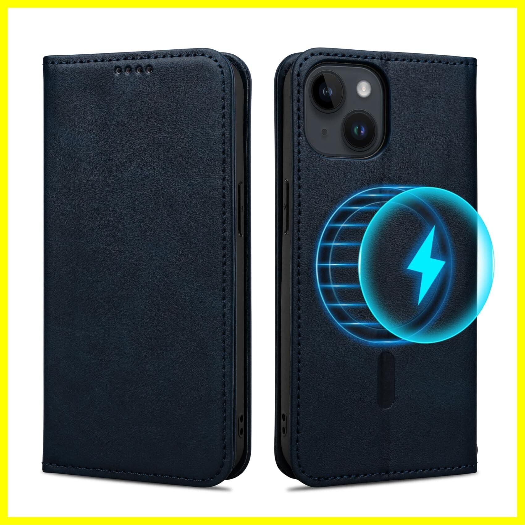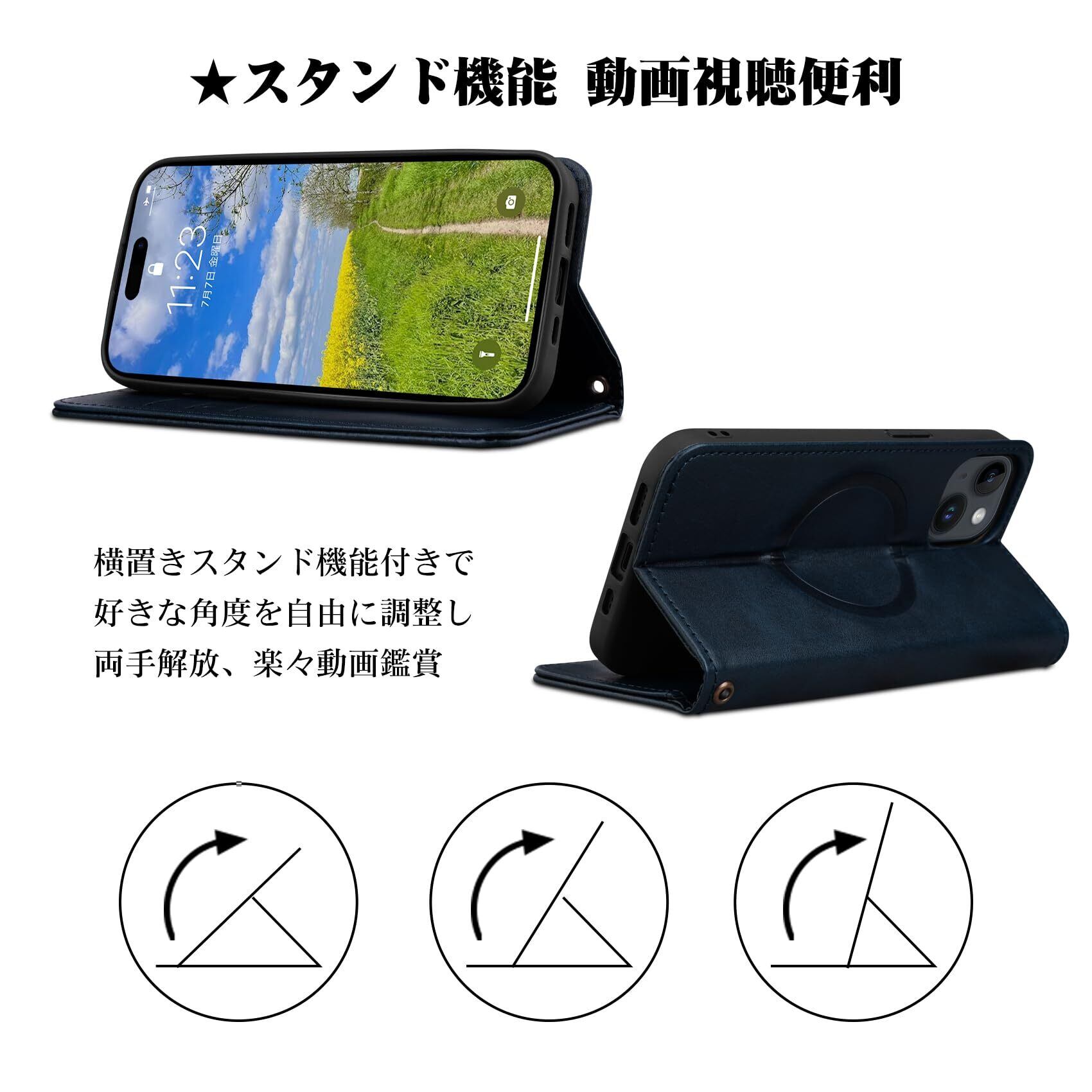 Rssviss iPhone 15 用 手帳型 MagSafe対応 ケース カード収納 ワイヤレス充電対応 スタンド機能 全面保護 マグネット付き 6.1 inch対応 W1M ブルー