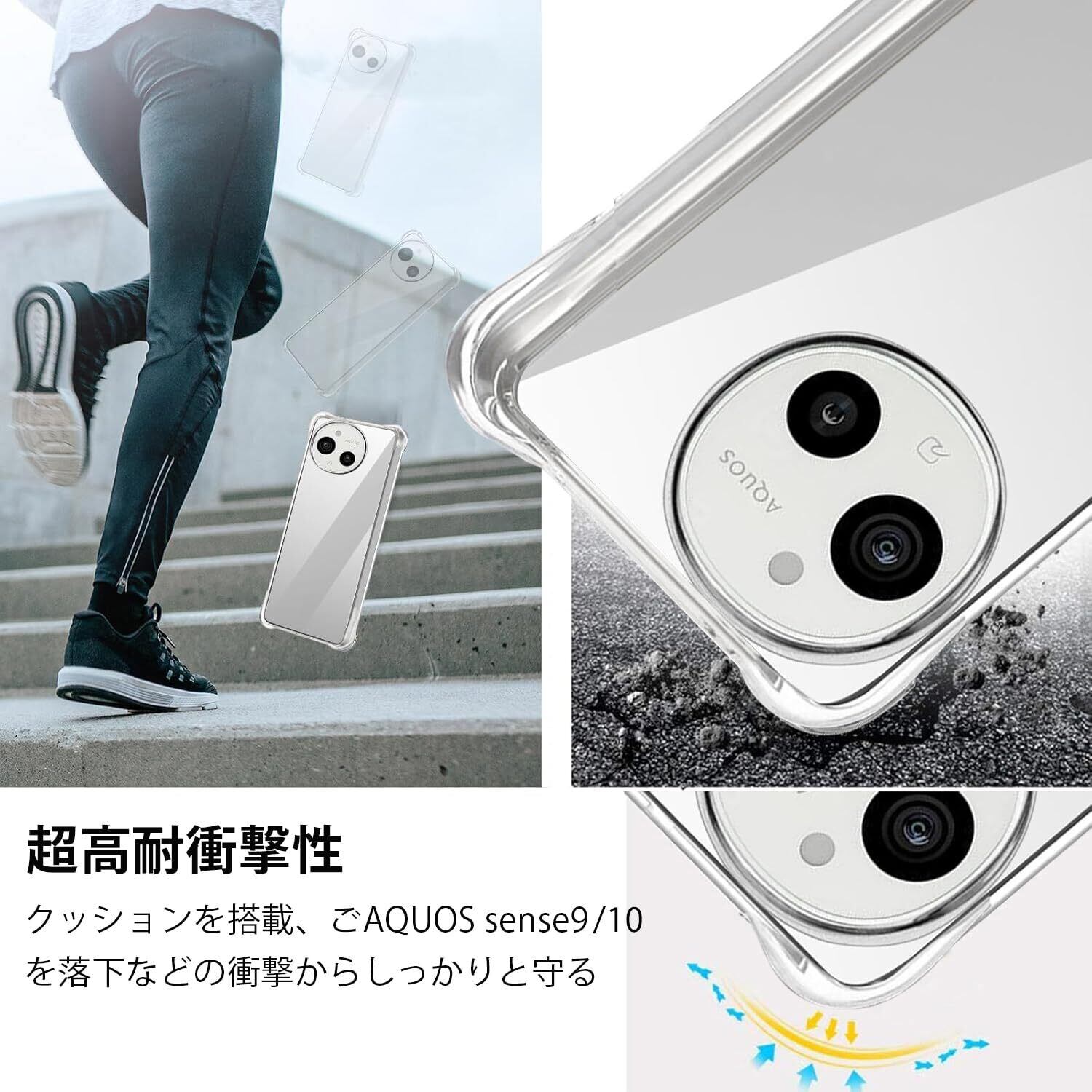 【衝撃吸収】 ゴムやシリコンのように柔らかいTPU素材使用!!本体に完全フィットし、全体を包み込むデザイン。保護ケースの四隅にエアショックパッドを設置して、スマートフォンが落下などの衝撃を吸収し、大切なAQUOS sense10/9を守ります.