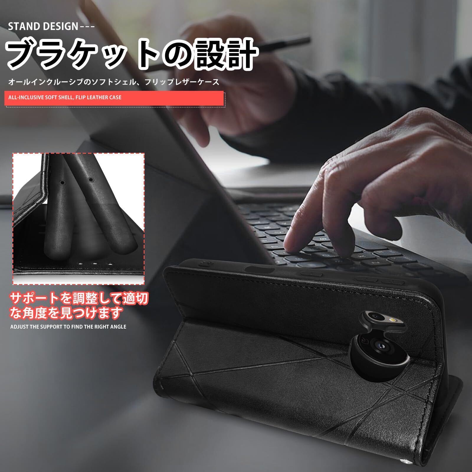 For AQUOS sense7 用の ケース 手帳型 スマホケース 財布 肌感レザー SH-53C SHG10 SH-M24 カバー カード収納 カードポケット マグネット式 スタンド機能付き おしゃれ 耐衝撃 全面保護 アクオスセンス 7 用の 携帯カバー ファッション 防塵(ブラック)
