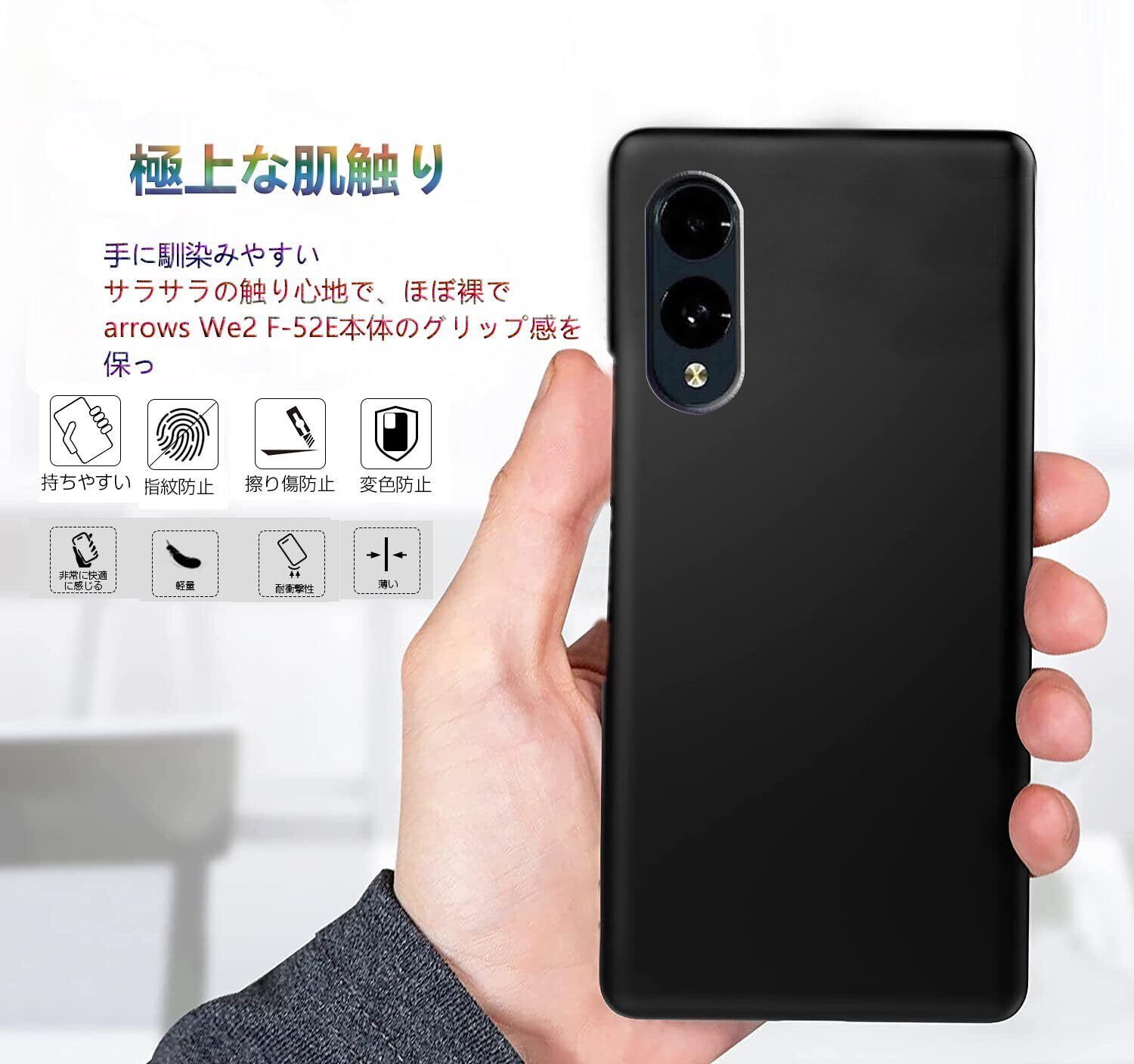 ケース arrows We2 F-52E 超軽量 超耐磨 超薄デザイン PCマット質感 黄変防止 指紋防 擦り傷防止 手触り良い ワイヤレス充電対応 ブラック