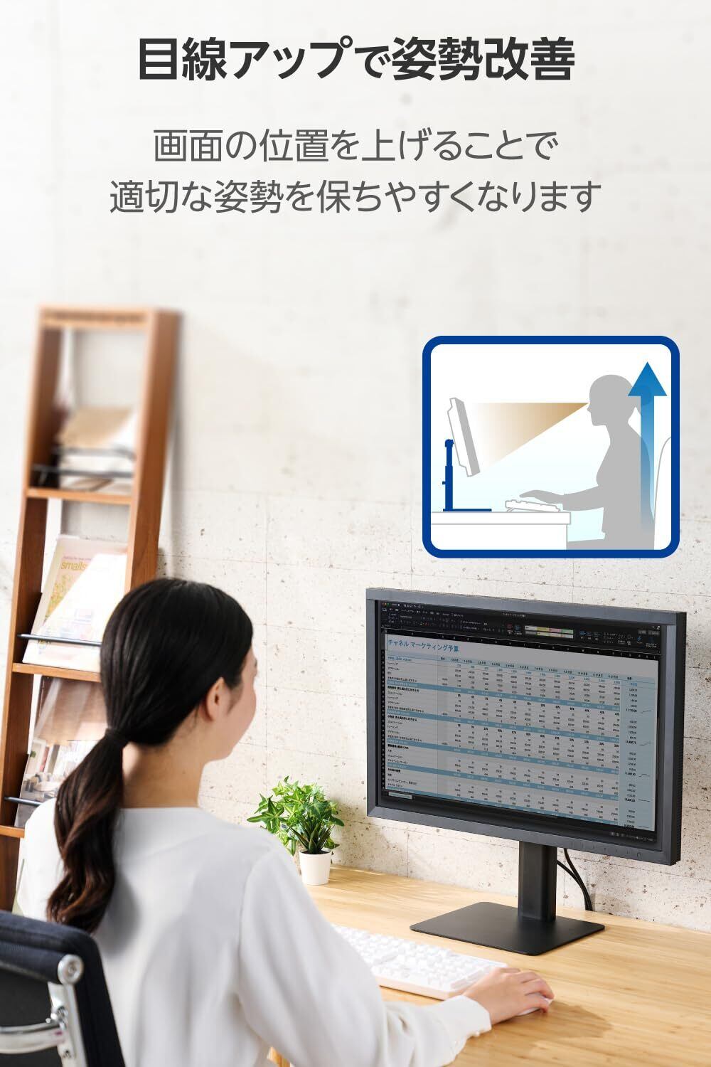■目線に合わせて高さが調整できる、モニタースタンドです。