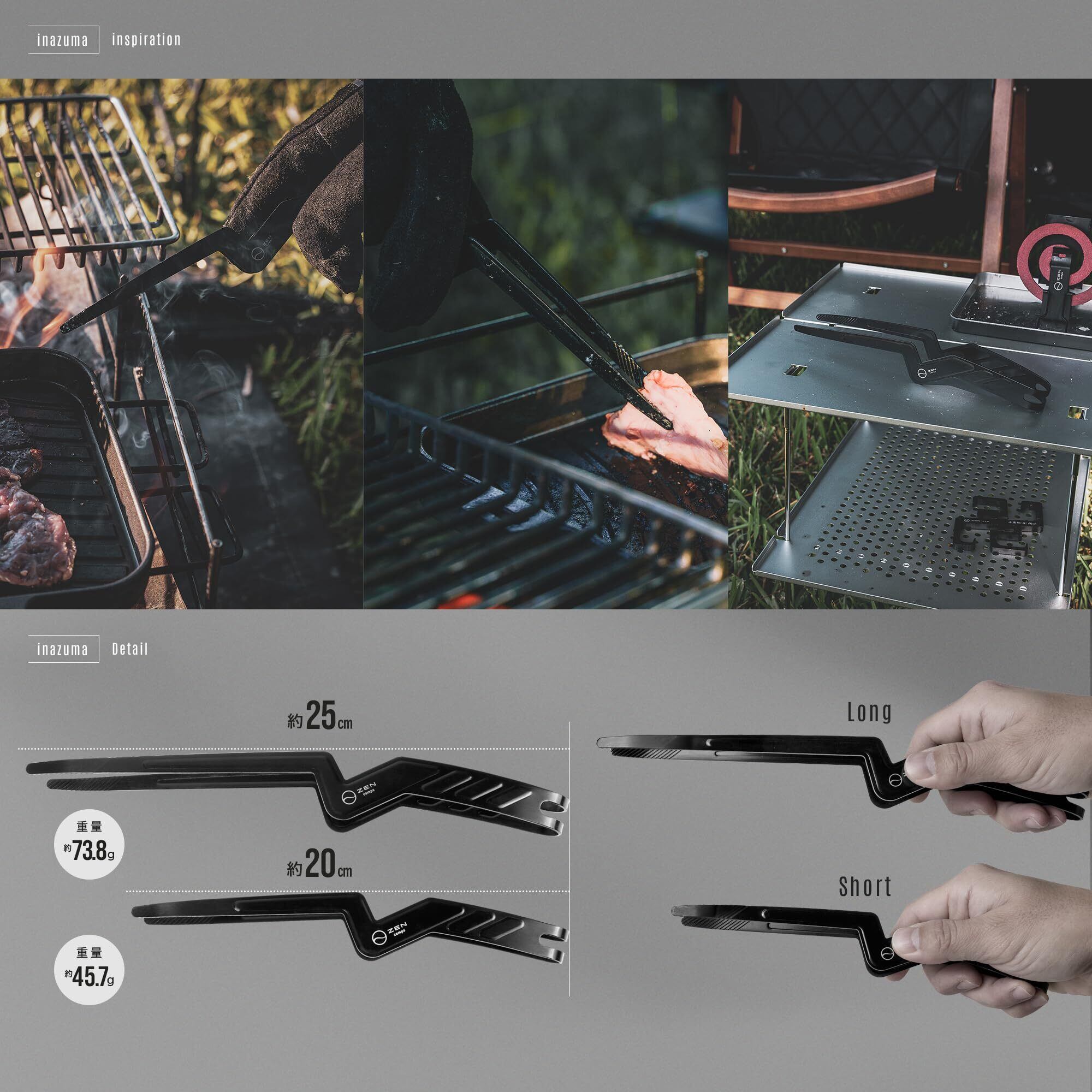 ZEN Camps トング いなずまトング ミニトング ソロキャンプ 焚き火 バーベキュー 焼肉 アウトドア 軽量 しっかり掴める (レギュラー:20cm)