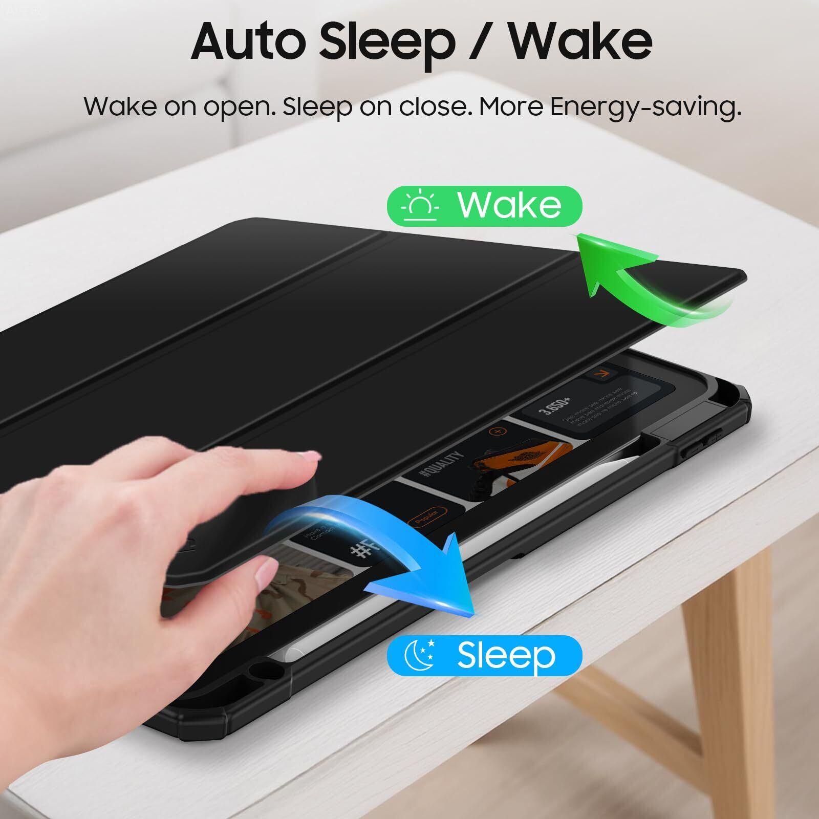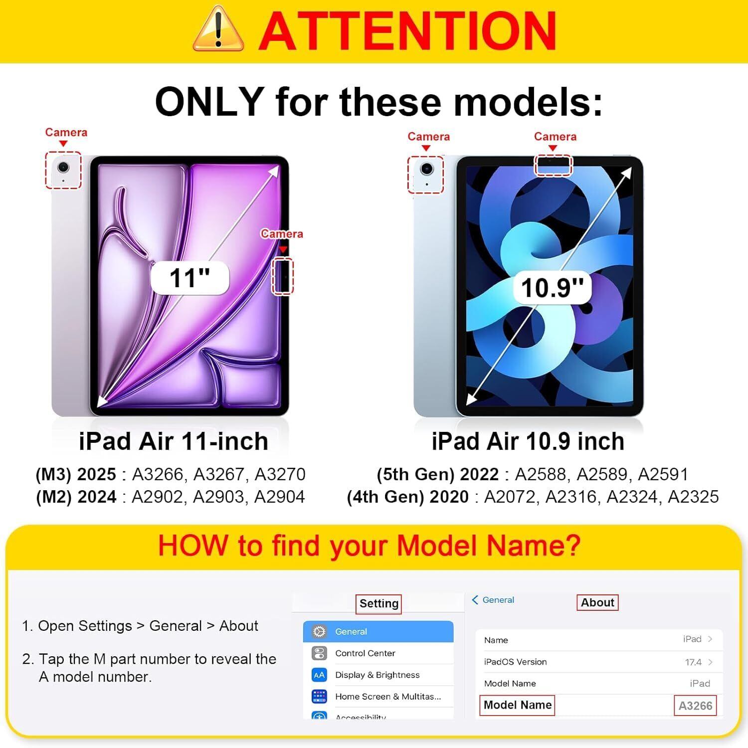 【対応機種】iPad Air 11インチ(M4) 2026発売 / iPad Air 11インチ(M3) 2025発売 第7世代(モデル番号:A3266/A3267/A3270) / iPad Air 11インチ(M2) 2024発売 第6世代 (モデル番号:A2902/A2903/A2904) / iPad Air 5 2022発売 第5世代 (モデル番号:A2588/A2589/A2591) / iPad Air 4 2020発売 第4世代 (モデル番号:A2072/A2316/A2324/A2325) 10.9インチ 専用スマートケース、透明バックカバー。(ご注意:iPad 第11世代 (A16、2025) 11インチ/ 第10世代 (2022) 10.9インチ、iPad Pro 11インチまたはiPadの他のモデルには対応していません、ご注文の際に、お手元機種のモデル番号を確認をお願い致します。)