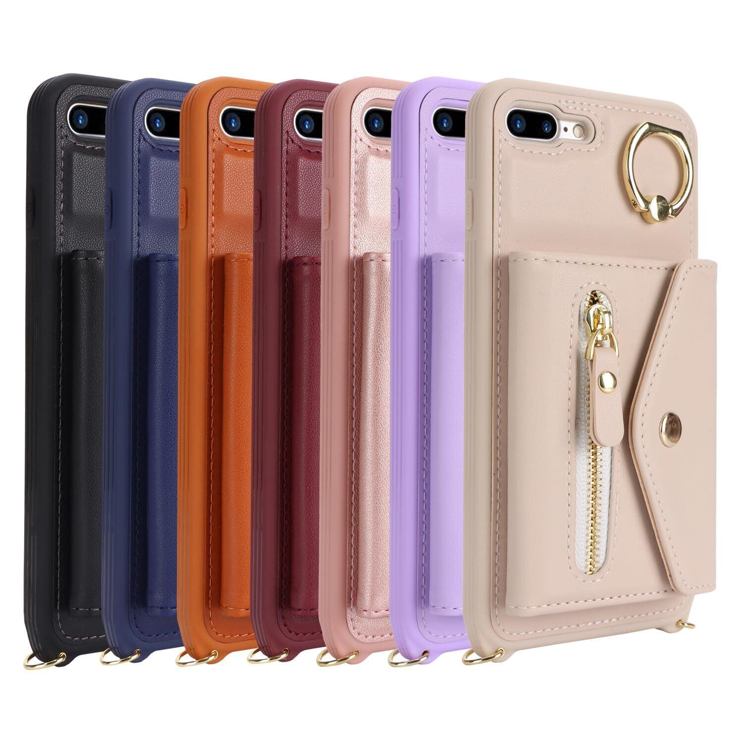 【Hamany】 対応 iPhone 8 plus ケース スマホ ショルダー iphone 7 plus ケース 手帳型 ショルダー おしゃれ カード収納 大容量 背面 リング付き スタンド機能 アイフォン8プラス ケース 耐衝撃 耐久性 女性 肩がけ 首掛け 斜め掛け ストラップ付き 長さ調整可能 カバー -ブラック