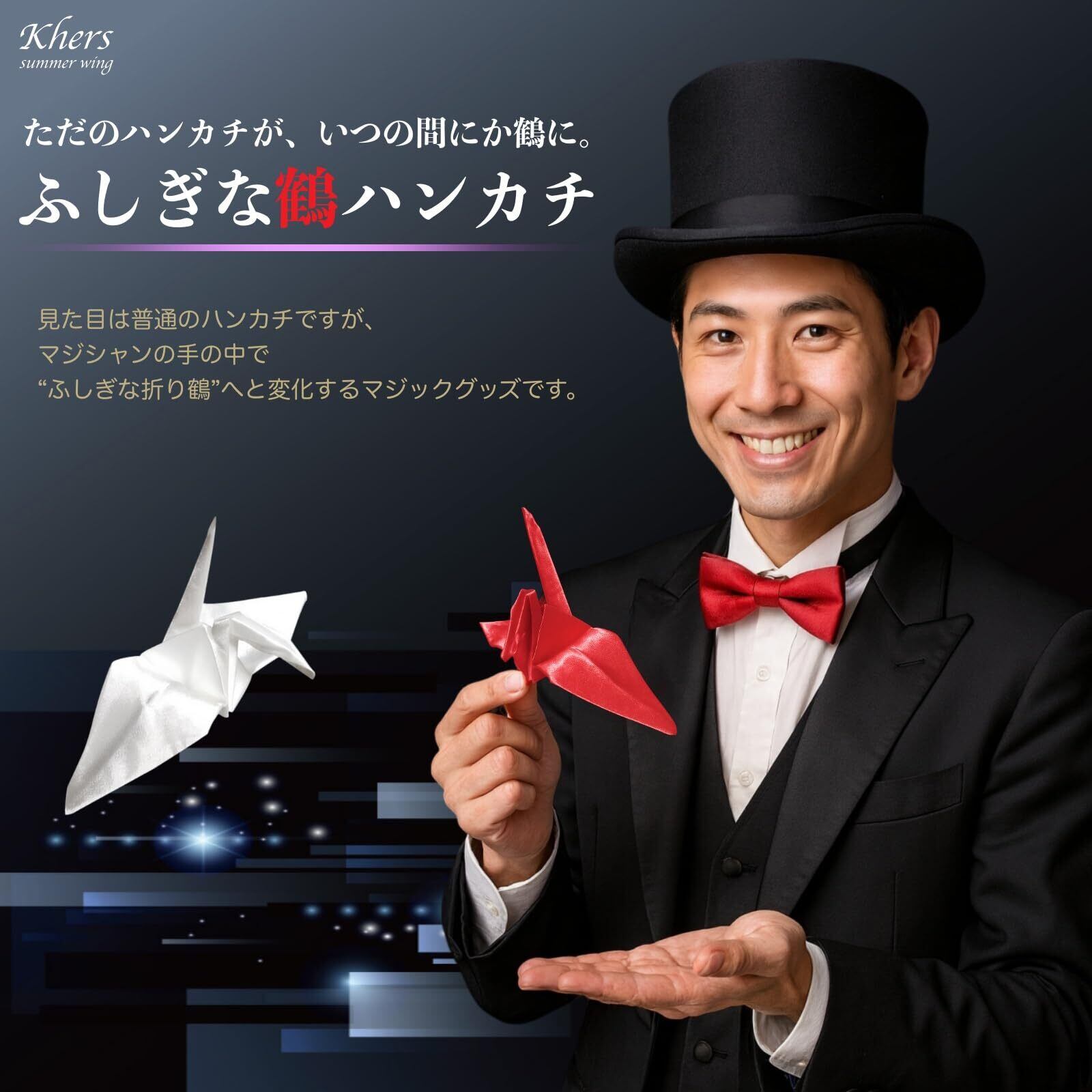 [Khers] ふしぎな鶴ハンカチ 手品 グッズ 簡単 マジック 手品道具 折り鶴になるハンカチ (赤)