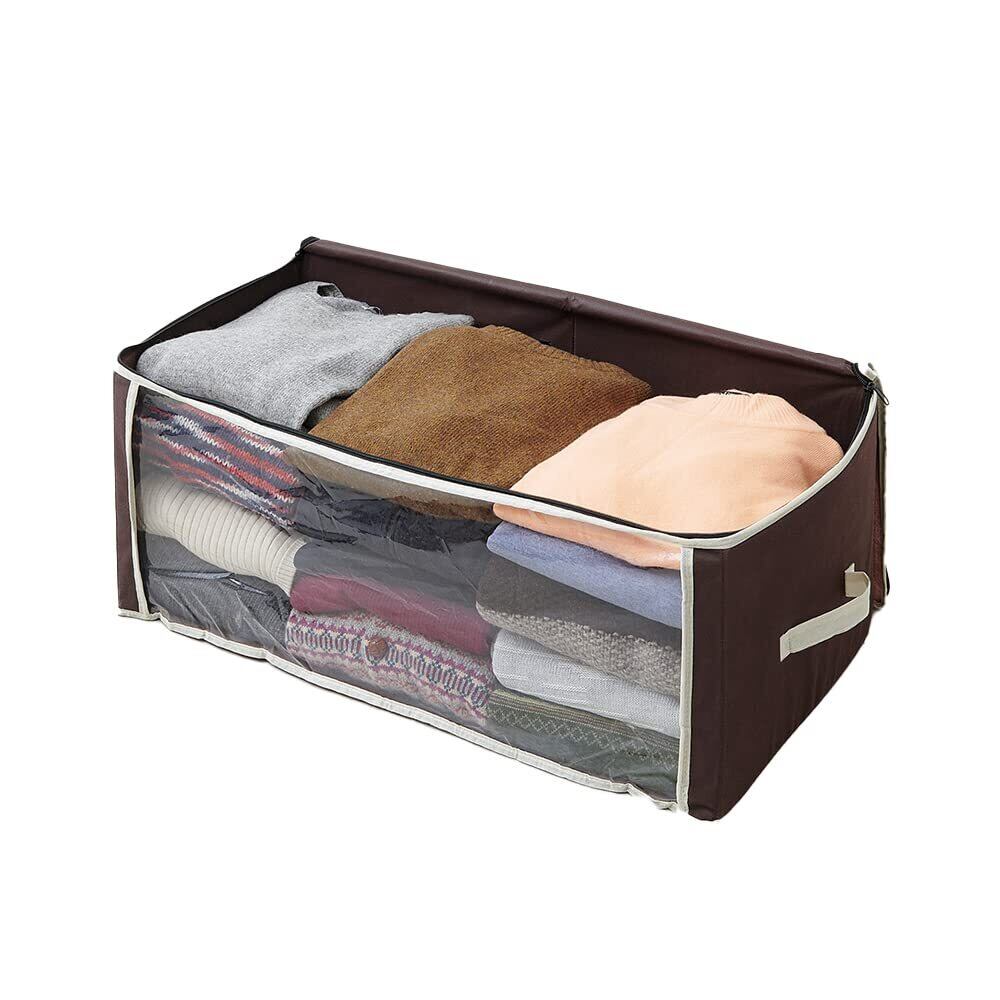 アイメディア(Aimedia) 衣類収納ケース 収納袋 炭入り消臭 収納ボックス 衣類用 収納袋 クリア窓付 不織布 持ち手付 防塵 炭加工シート 加齢臭 3層構造 炭入り消臭衣類収納ケース