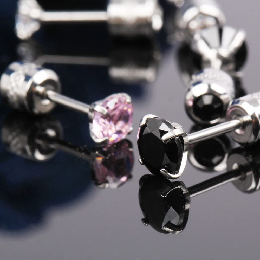 【フラットバックピアス】両面デザインを採用し、古典的な6つのプロングAAA +キュービックジルコンの片側と反対側のベゼルセッティング。両耳のスタッドは、内部的にネジのスレッド設計を持っている、あなたが前面に背中を置くことができますすることができます。