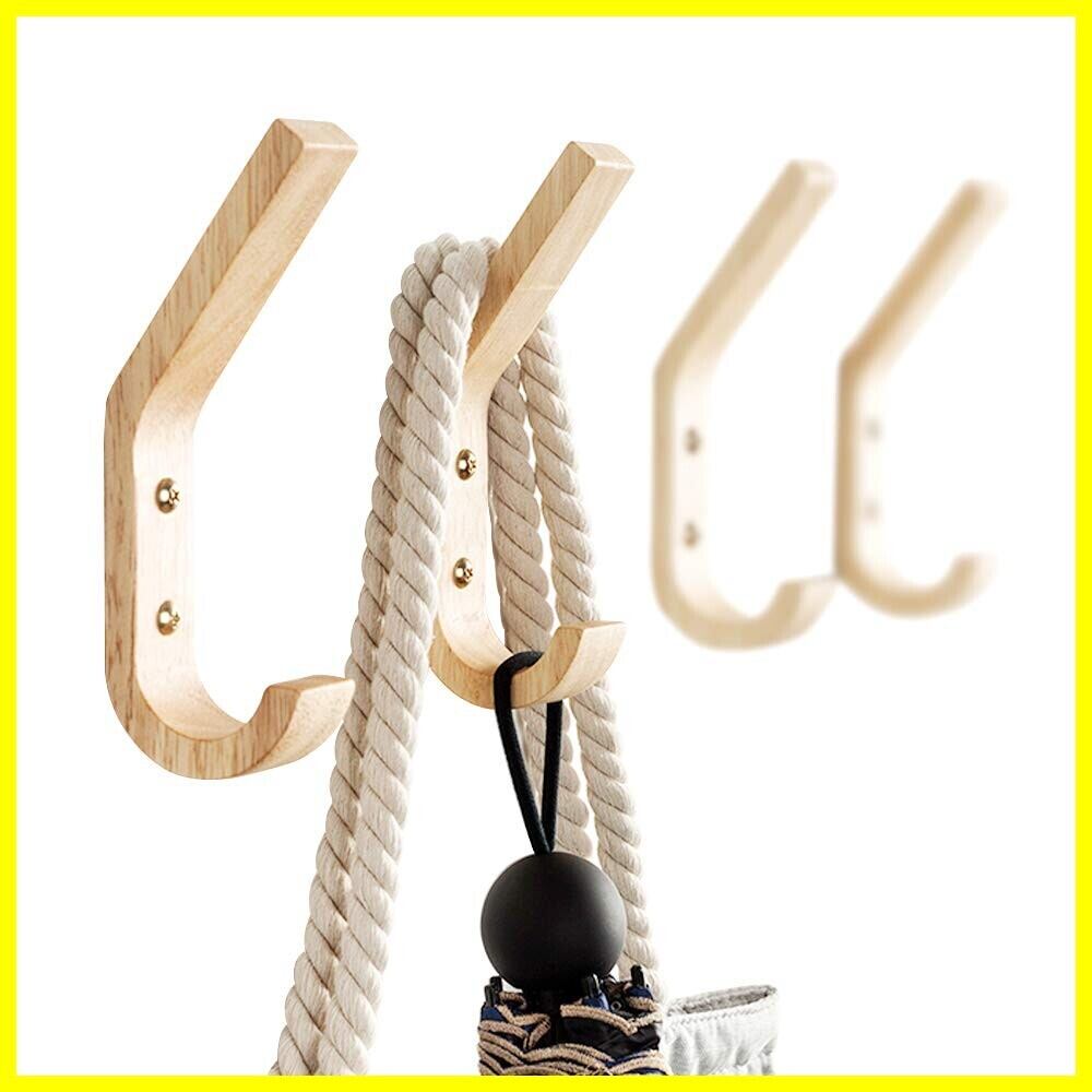 壁掛けフック 木製 壁掛けハンガー 北欧 ウォールナット 石膏ボード壁 コート掛け 両用フック J字フック 玄関用(4個セット)