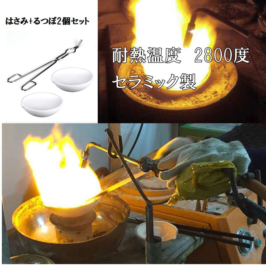 はさみ + るつぼ 2個 セット セラミック 耐熱 皿 ボウル 2800度 金銀細工 彫金 坩堝 鍛金用 (はさみ+るつぼ2個(直径8㎝))
