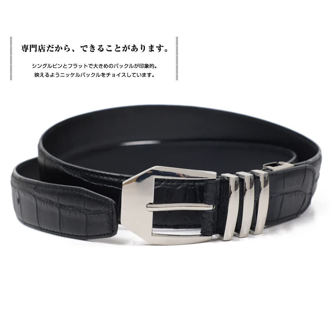 [BEEL] ベール ワニ革デザインのロングビジネスベルト メンズ クロコダイル型押し
