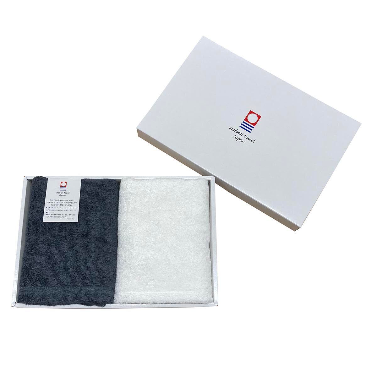 今治タオル ギフトセット フェイスタオル2枚 ネイビー・ホワイト 箱入れ 包装 制菌タオル 抗菌防臭 臭わない 約34x80cm 日本製 部屋干し ハンガーサイズ