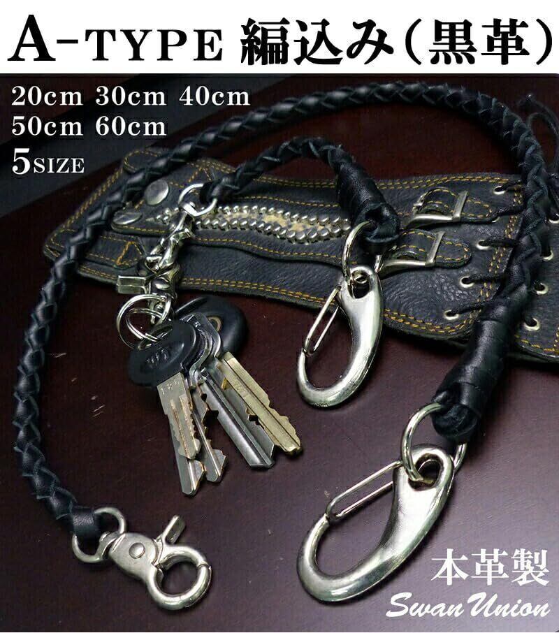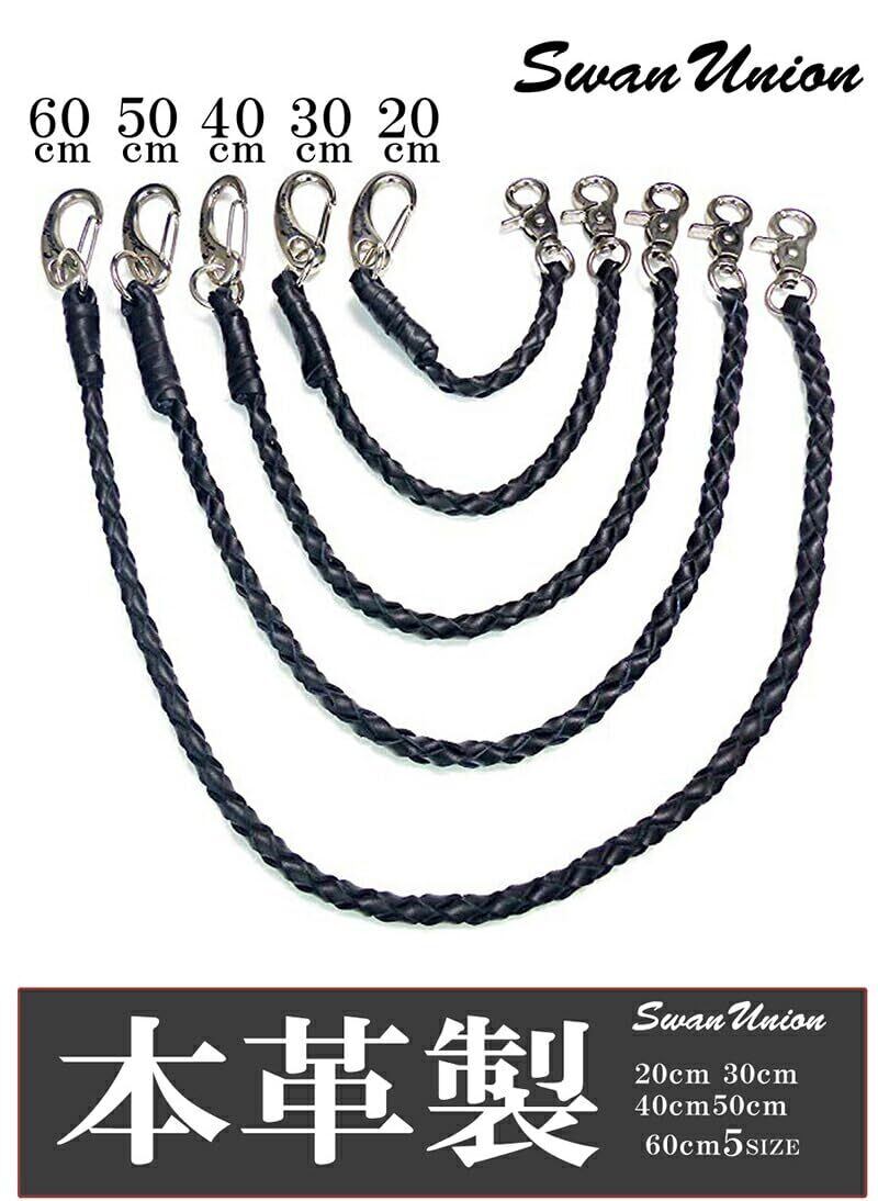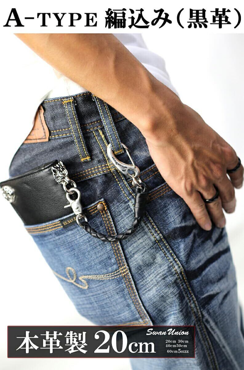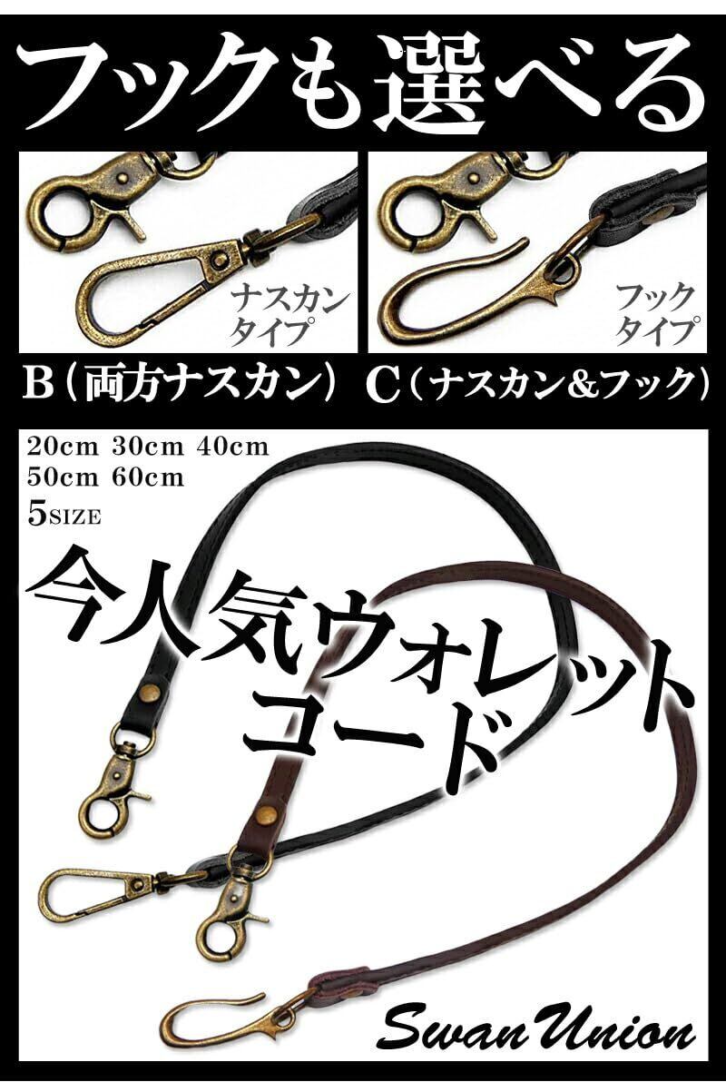 [スワンユニオン] 本革 ウォレットロープ メンズ 60cm 黒 ウォレットコード 革 手編み バイカー レザー 財布 ファッション ウォレットチェーン chwx20-60-va1