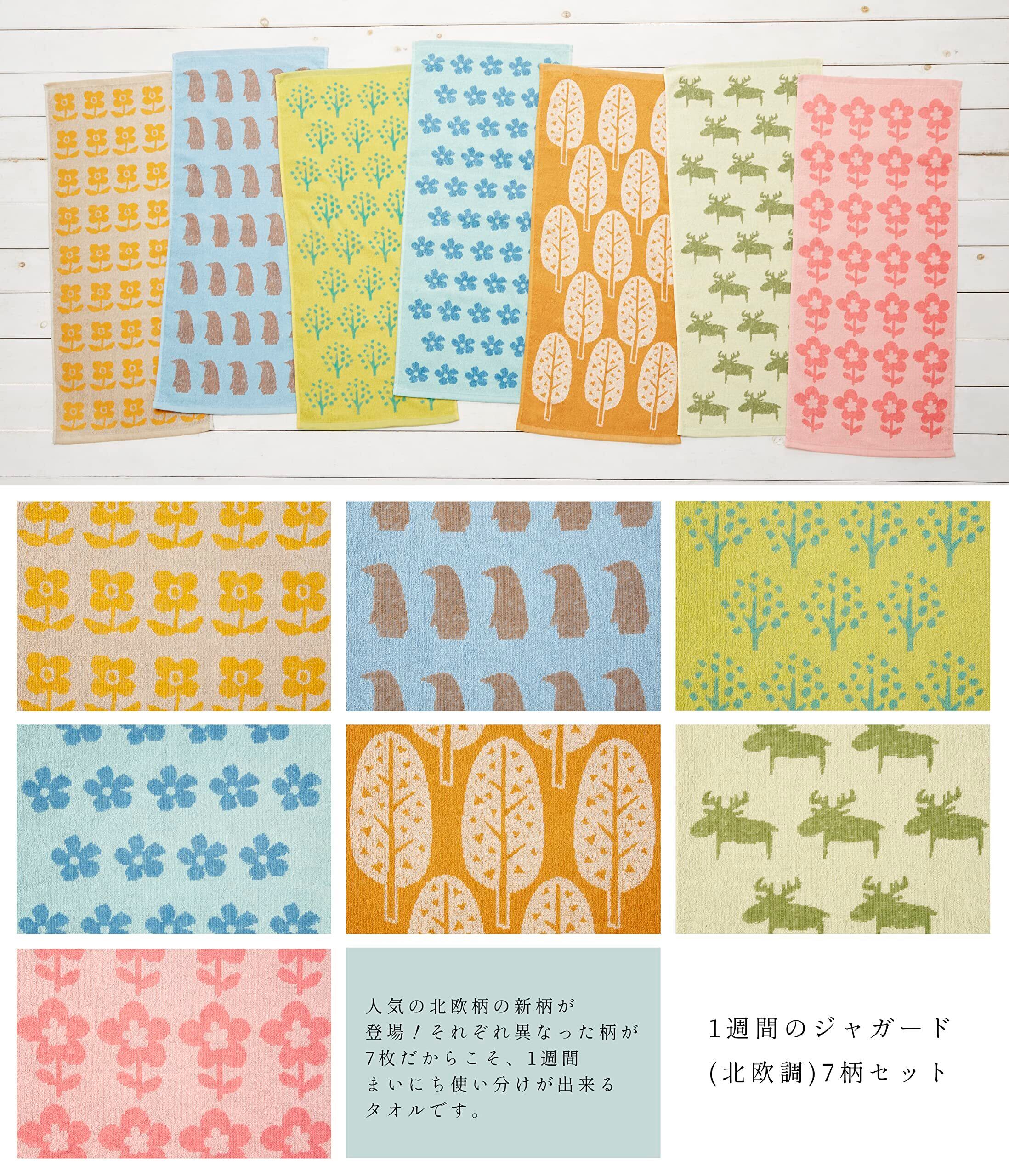 Kosugizen フェイスタオル 1週間のジャガード 北欧調 7色(7柄)各1枚入 34×80㎝ 北欧風モチーフ 1週間まいち使い分け 7枚セット SV-2318-7