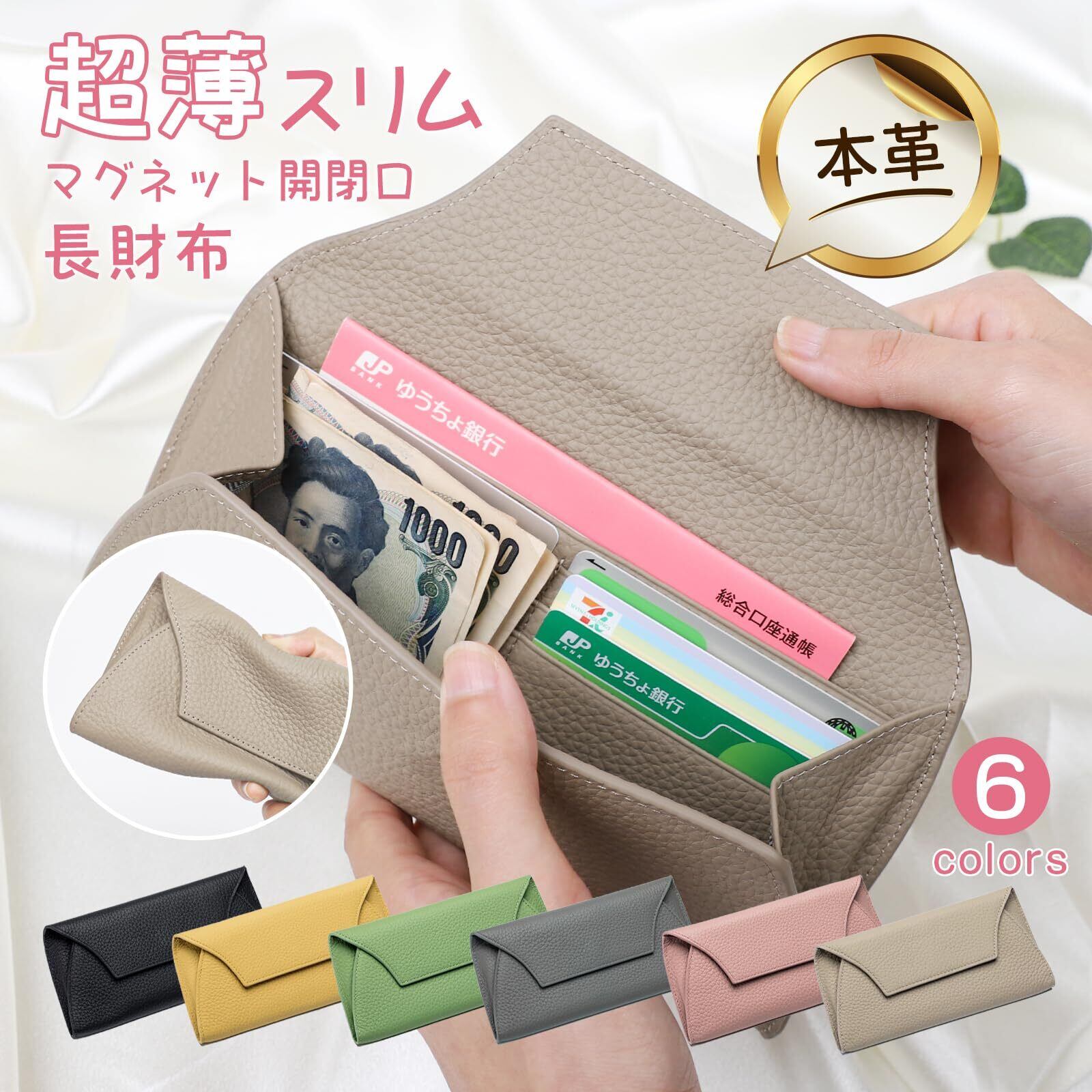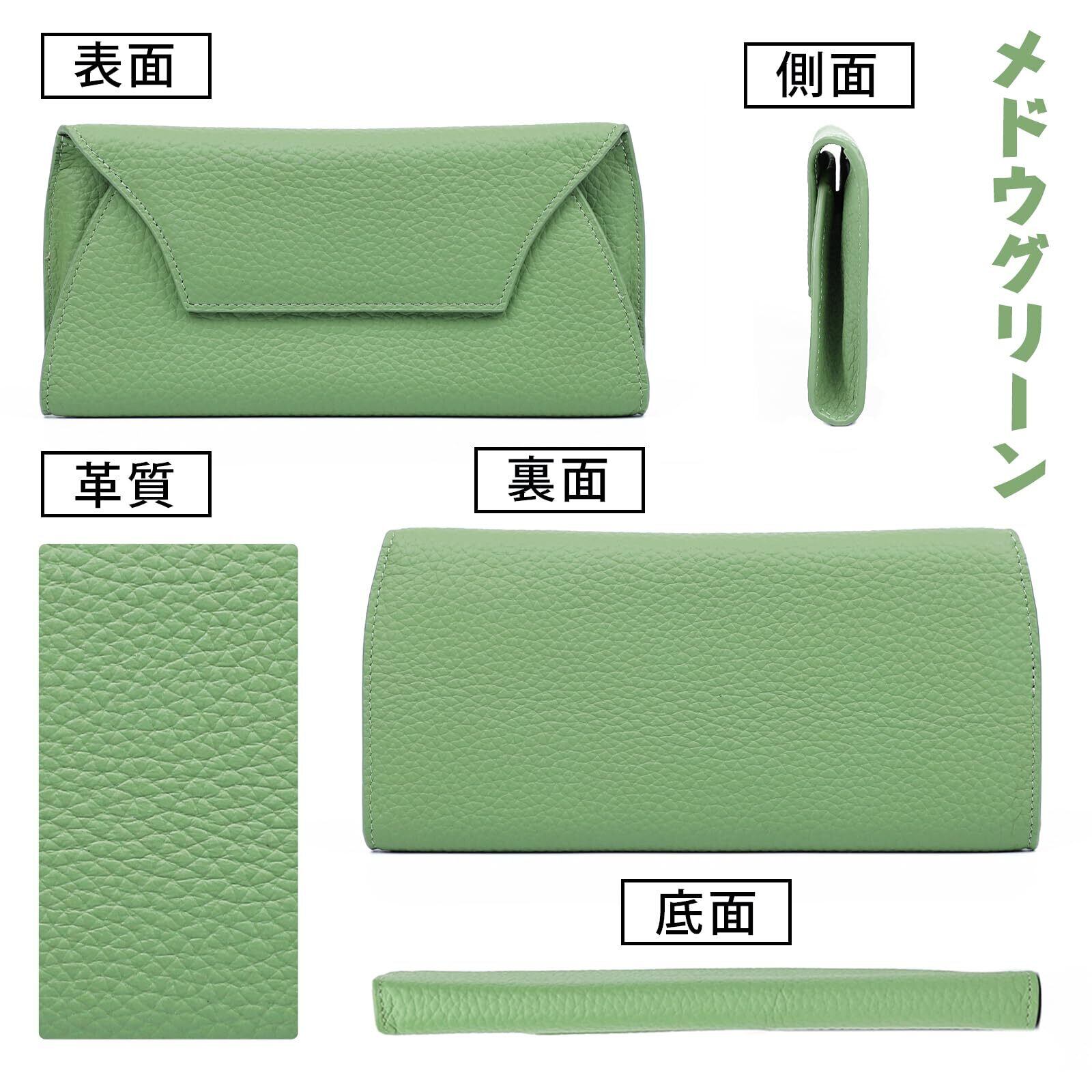 [imeetu] 財布 薄型 レディース 長財布 通帳入れ スマホ入れ可能 本革 大容量 軽量 無地 通帳ケース おしゃれ メンズ(メドウグリーン)
