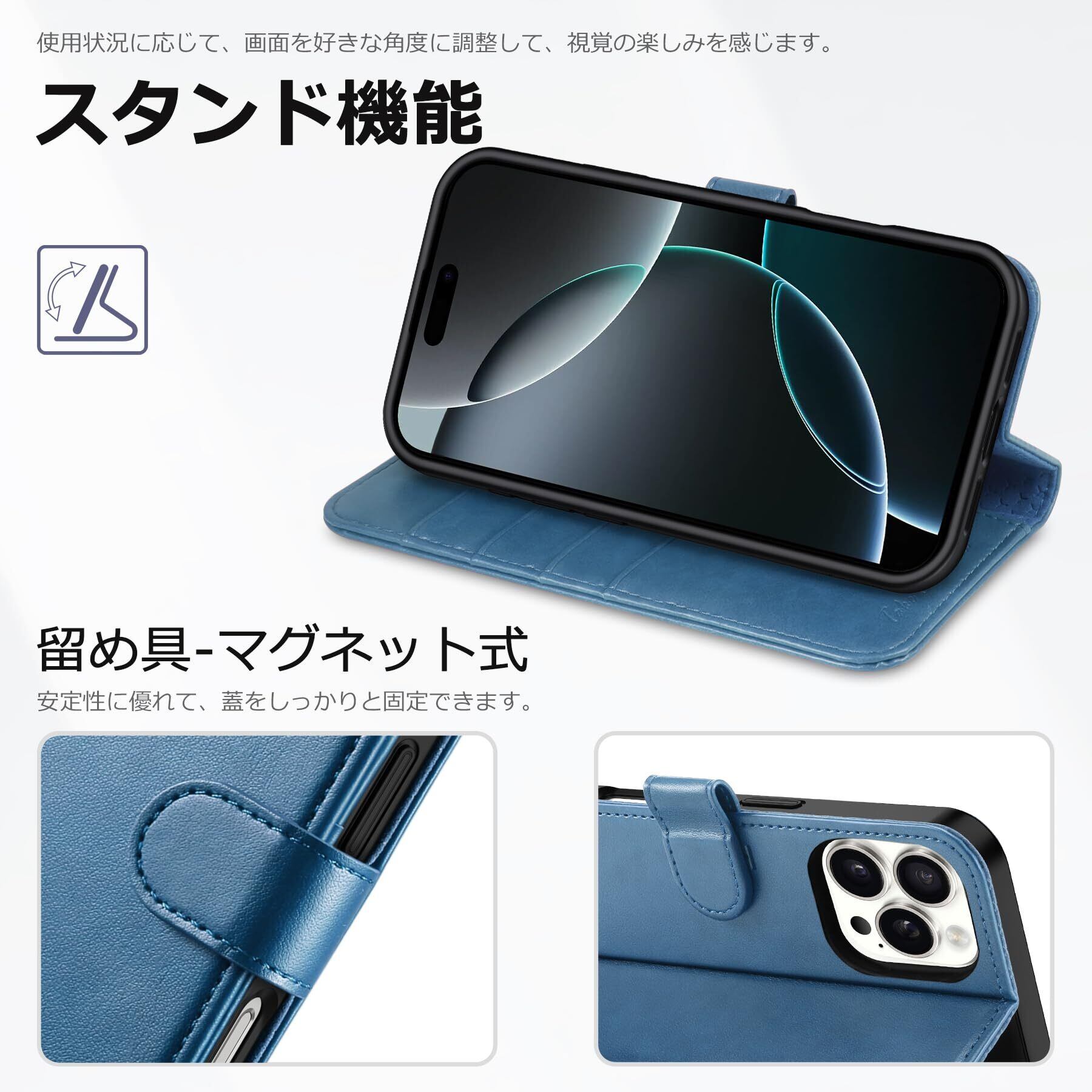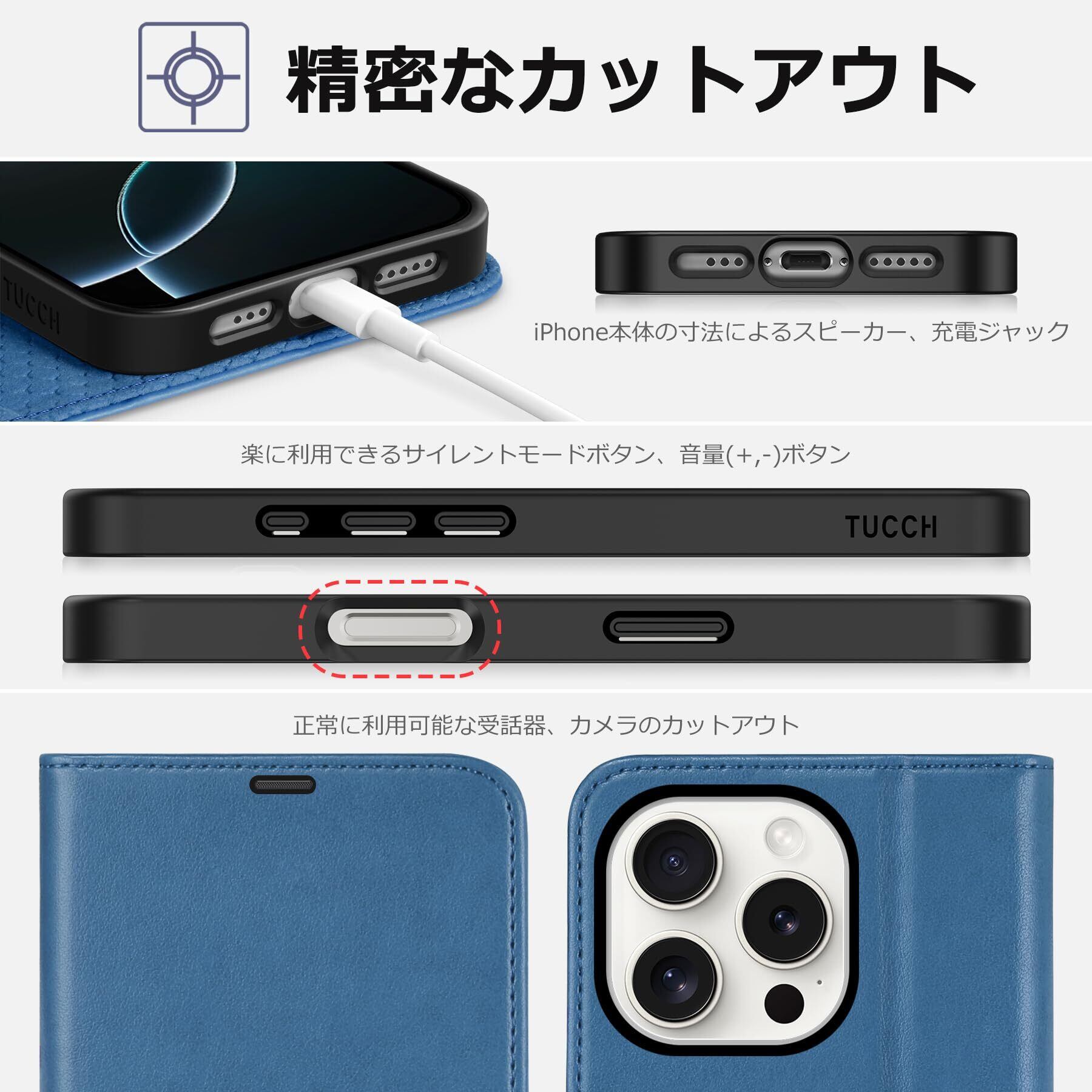 TUCCH iPhone16 Pro 対応 ケース 手帳型 アイホン16プロ 手帳型ケース カードポケット付き [RFIDブロッキング] スタンド機能 全面保護 PU合皮 マグネット式 アイフォン16プロ手帳ケース (2024年発売 アイフォーン16プロ 5G 6.3インチ 対応) レイクブルー