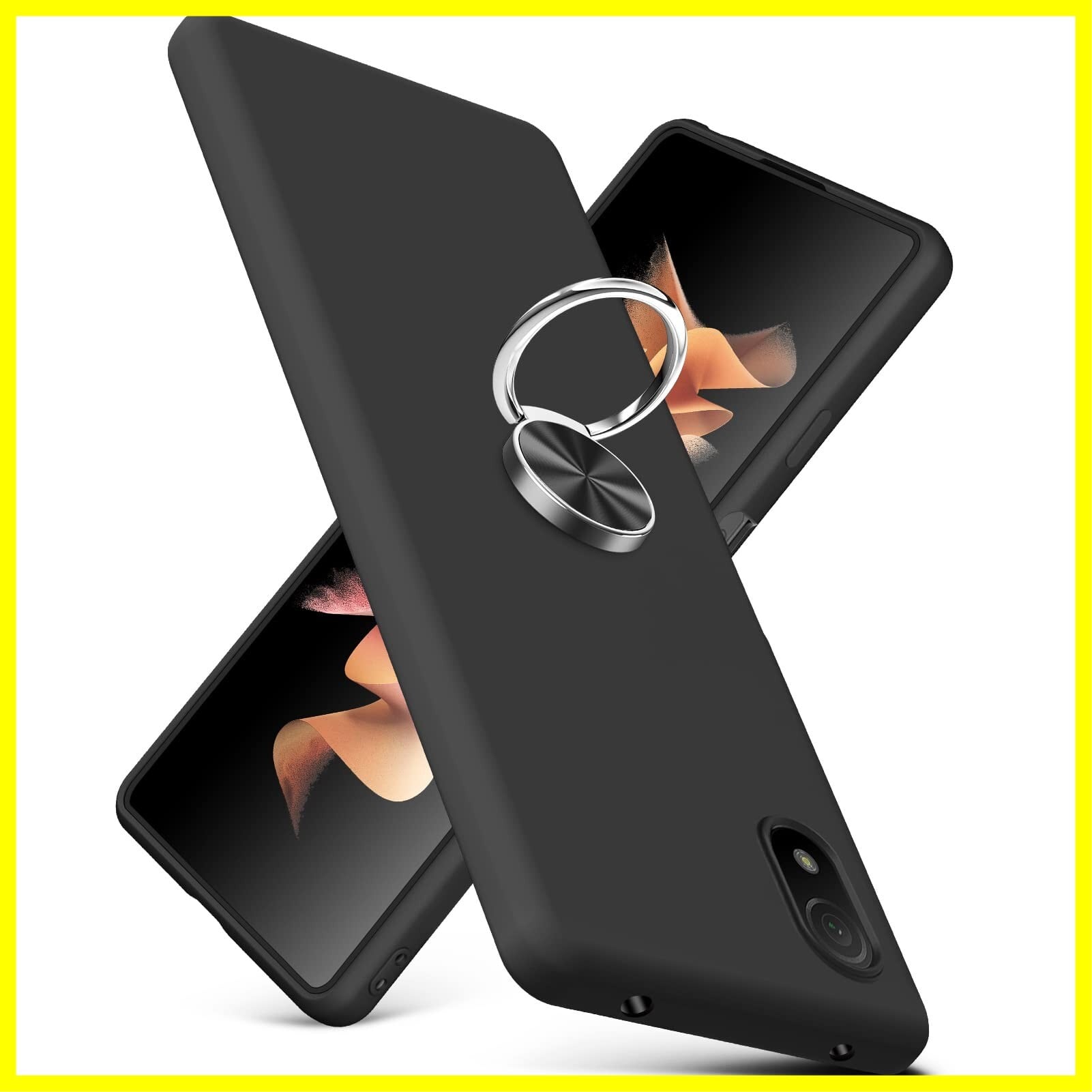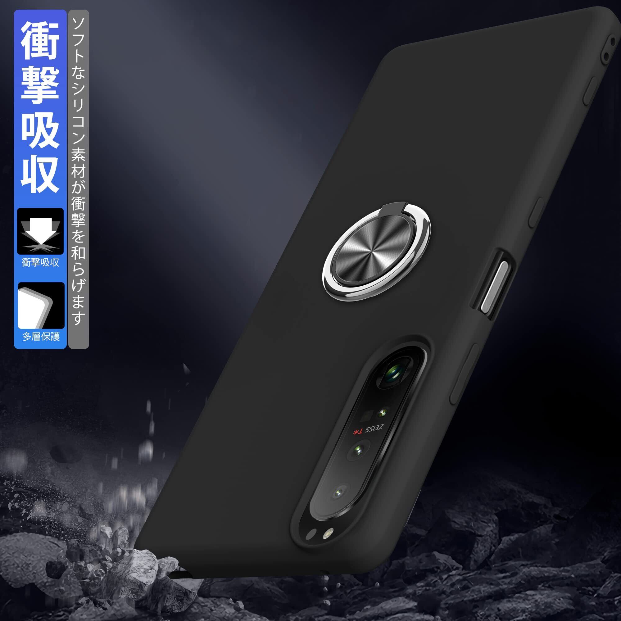 対応 Xperia Ace III 用の ケース リング 耐衝撃 シリコン SO-53C SOG08 カバー TPU 薄型 リング付き かわいい ストラップホール付き 指紋防止 レンズ保護 磨り表面 擦り傷防止 滑り止め 軽量 黄変防止 脱着簡単 黒C91-ace iii-01