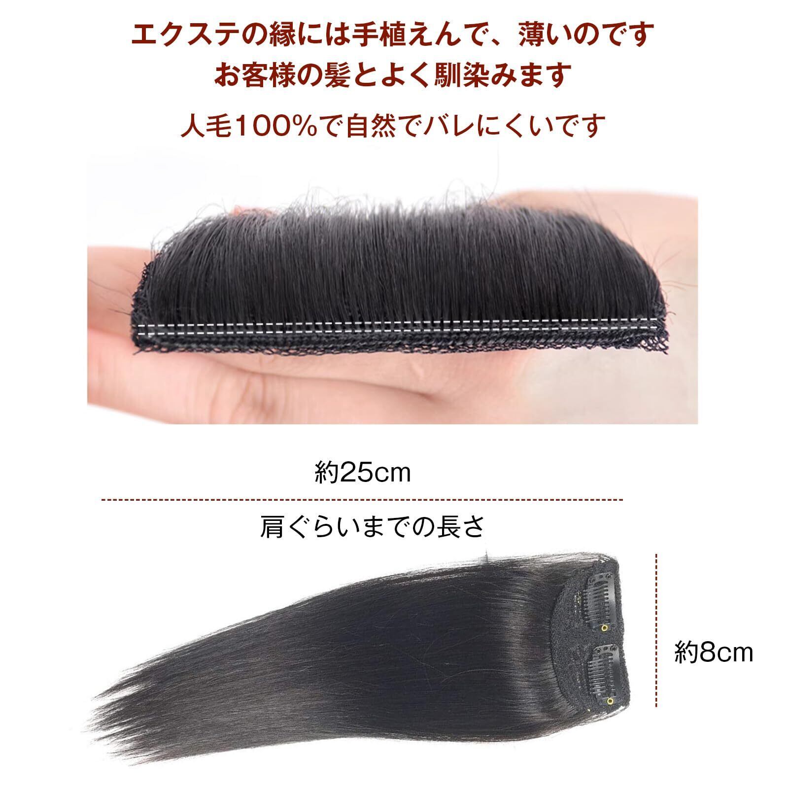 HIYE 付け毛 人毛 100% ヘアピース エクステ ワンタッチ ウィッグ ボリュームアップ ボリューム 増毛 ポイントウィッグ クリップ トップカバー 両側付け 後ろ付け (自然黒色, 25cm)