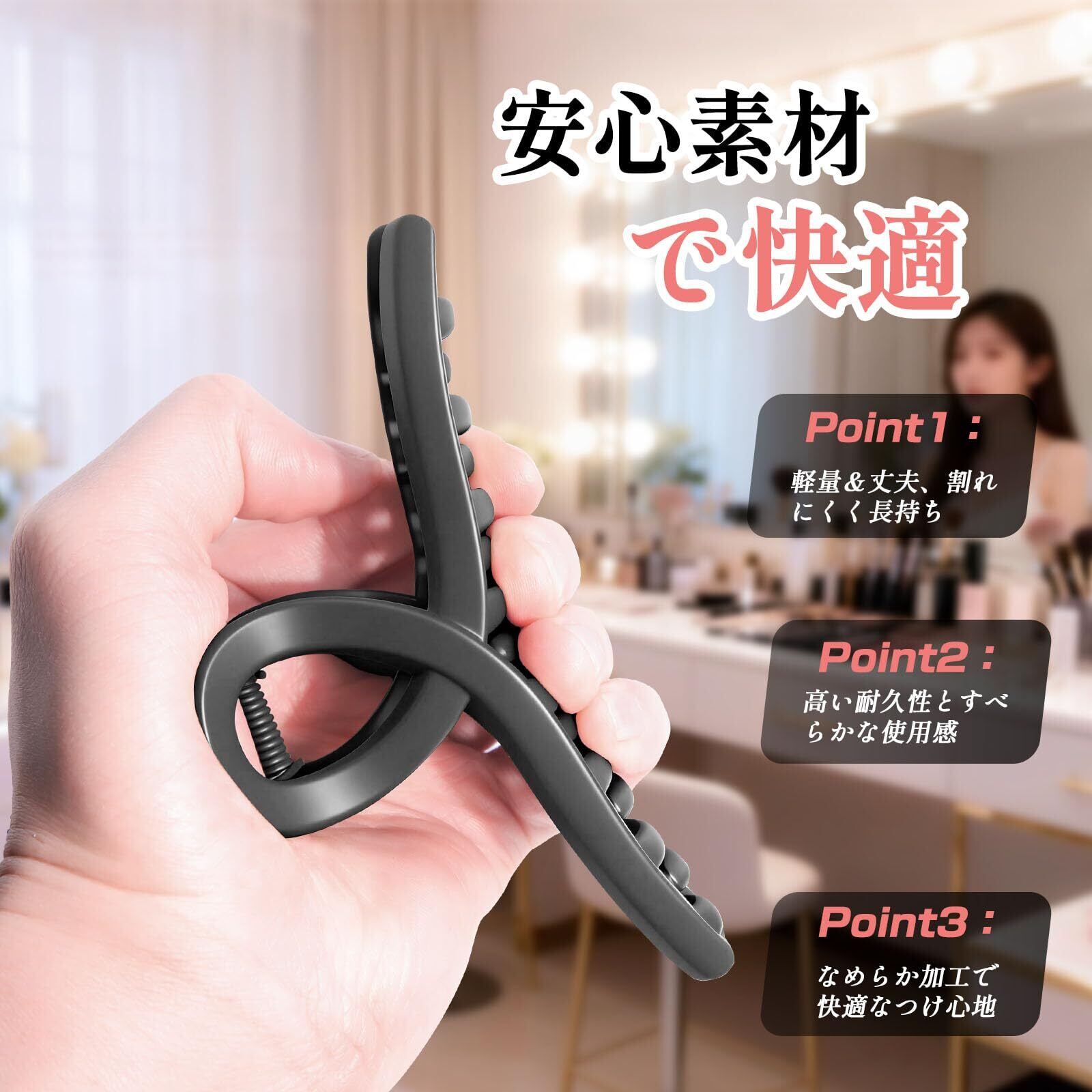 【割れにくい髪 クリップ】強度が強いPC樹脂で仕上げたヘアアクセサリーです、色が褪せにくく、柔軟性があり、防水性にも優れています。
