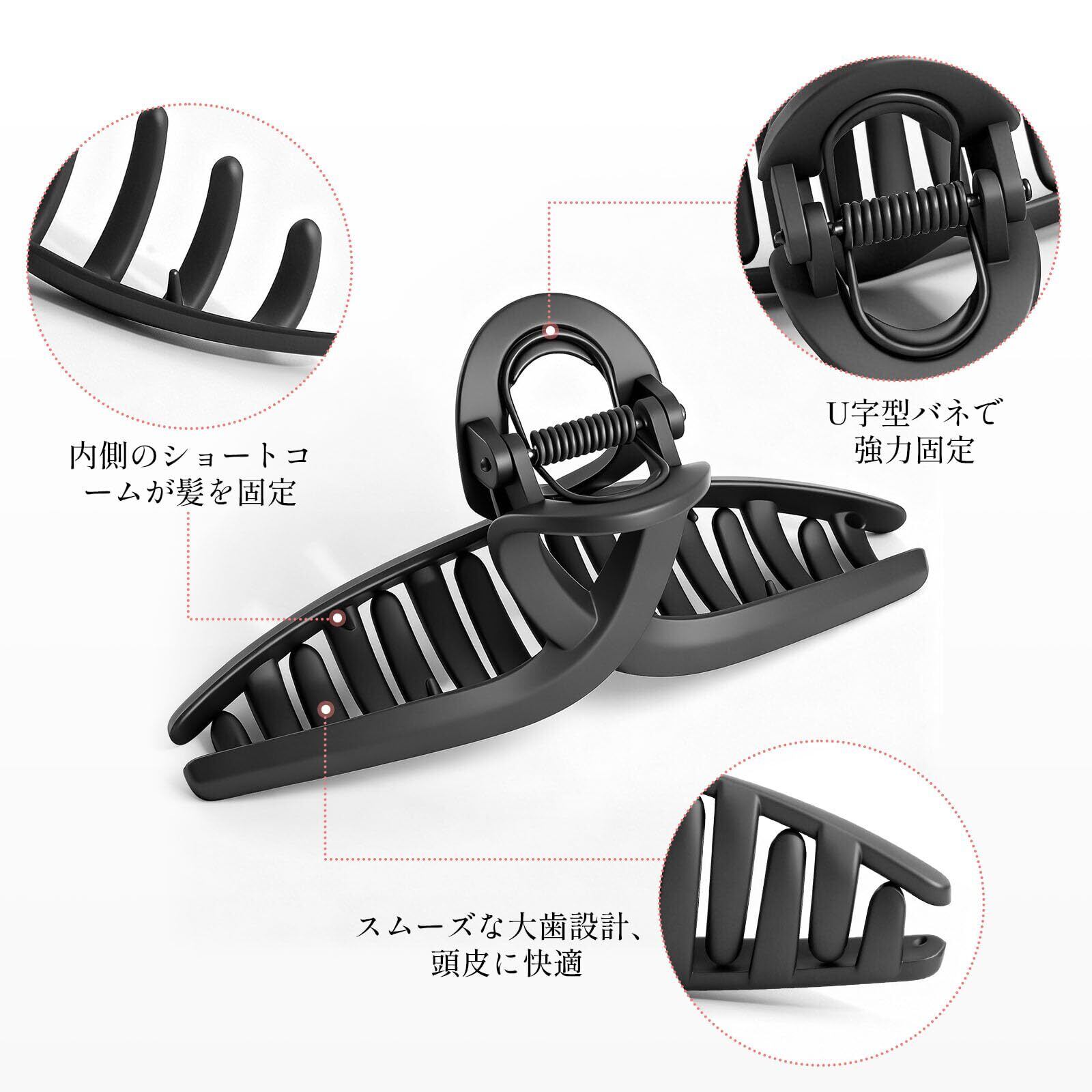 【大きめなヘアクリップ】13cmと大きめサイズで、さらにギザギザの滑り止め歯を採用して、厚い髪や薄い髪を最大限に固定することができます。簡単には落ちず、髪を傷つけることもありません。