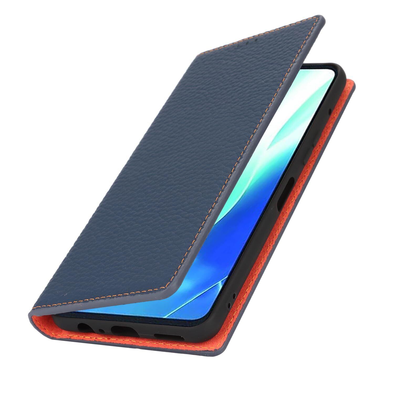 Eastwave for Arrows We2 Plus F-51E ケース 本革 牛革 for ArrowsWe2plus M06 手帳型 for arrows We2plus 本革 柔らかい 本皮 スプラットホール付き スプラット同梱 内蔵マグネット - ネイビー
