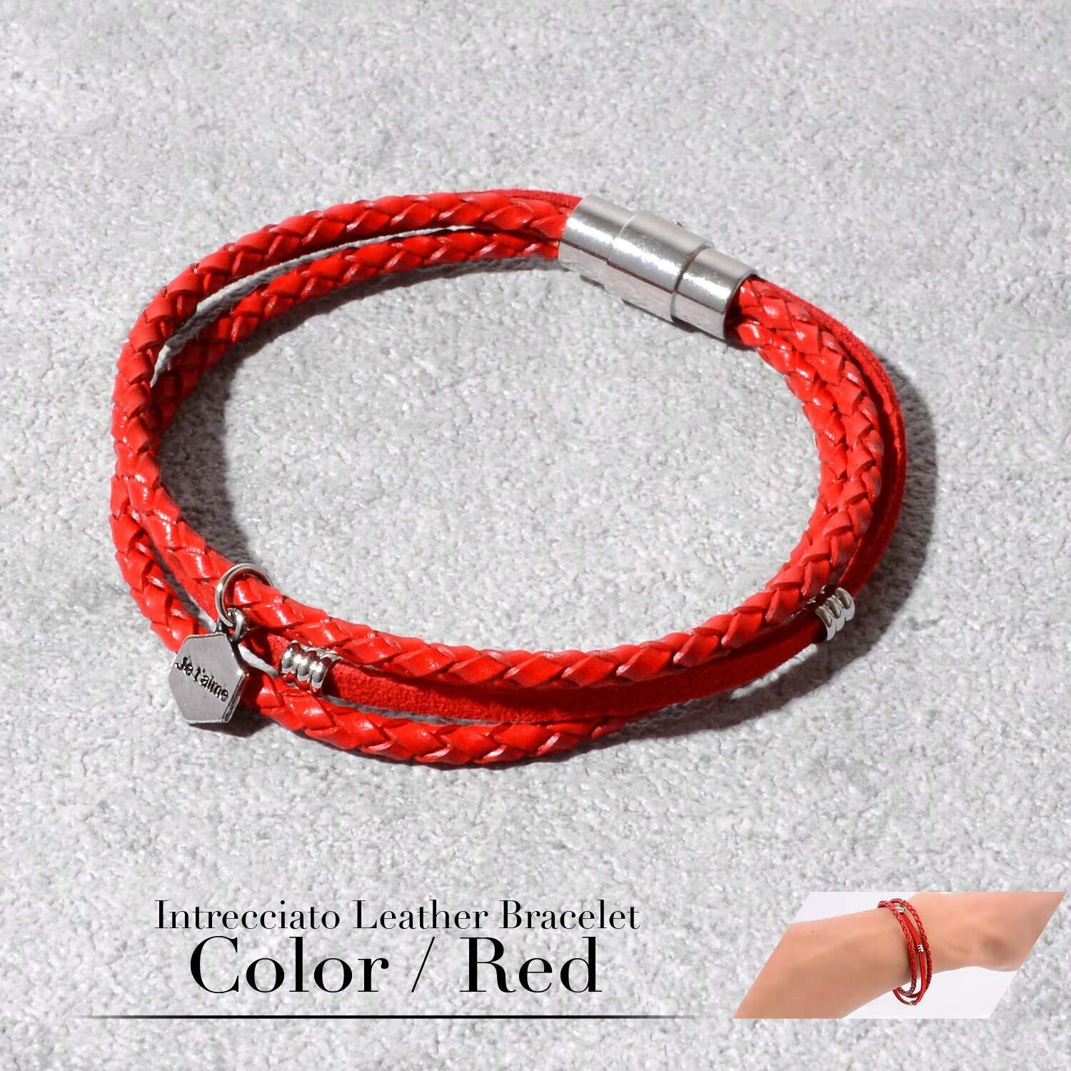 [ナル] 本革 編み込み レザー ブレスレット メンズ レディース ペア おそろい カップル 人気 革 ブランド 3連 赤 レッド
