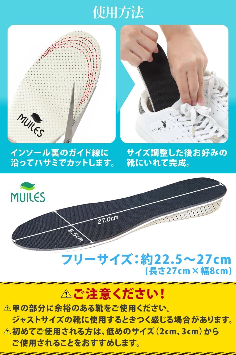 シークレットインソール 高さ4サイズ 【2cm/3cm/4cm/5cm】 インソール 身長アップ サイズ調整 (22.5cm~27.0cm) 通気性 疲れにくい 男女兼用 Muiles (2cm×1組)