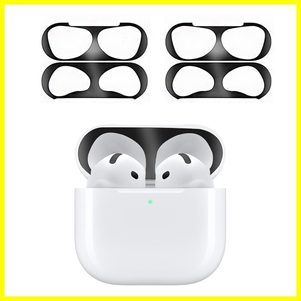【2024強化版】ELYBYYLE for AirPods 4 ダストガード エアーポッズ 4用 ガードカバー 故障防止 吸着 ほこり ゴミ 金属製 侵入防止 防塵 粉塵防止 ブラック 4枚(2セット)