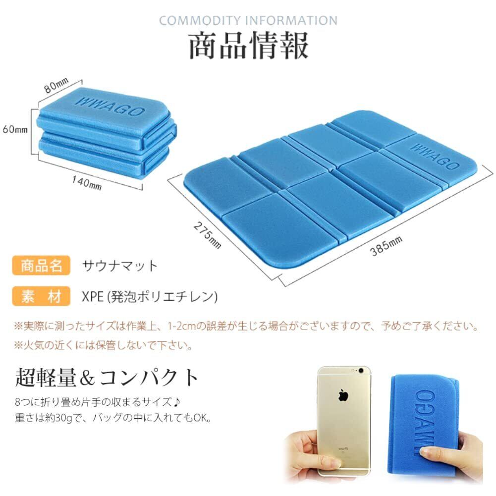 【快適なサウナライフに◎】超軽量な折りたたみ式サウナマットになります。浴場に片手で持ち込める8つ折りデザイン。携帯便利で、荷物置き場でも場所を取りません。収納袋付き。