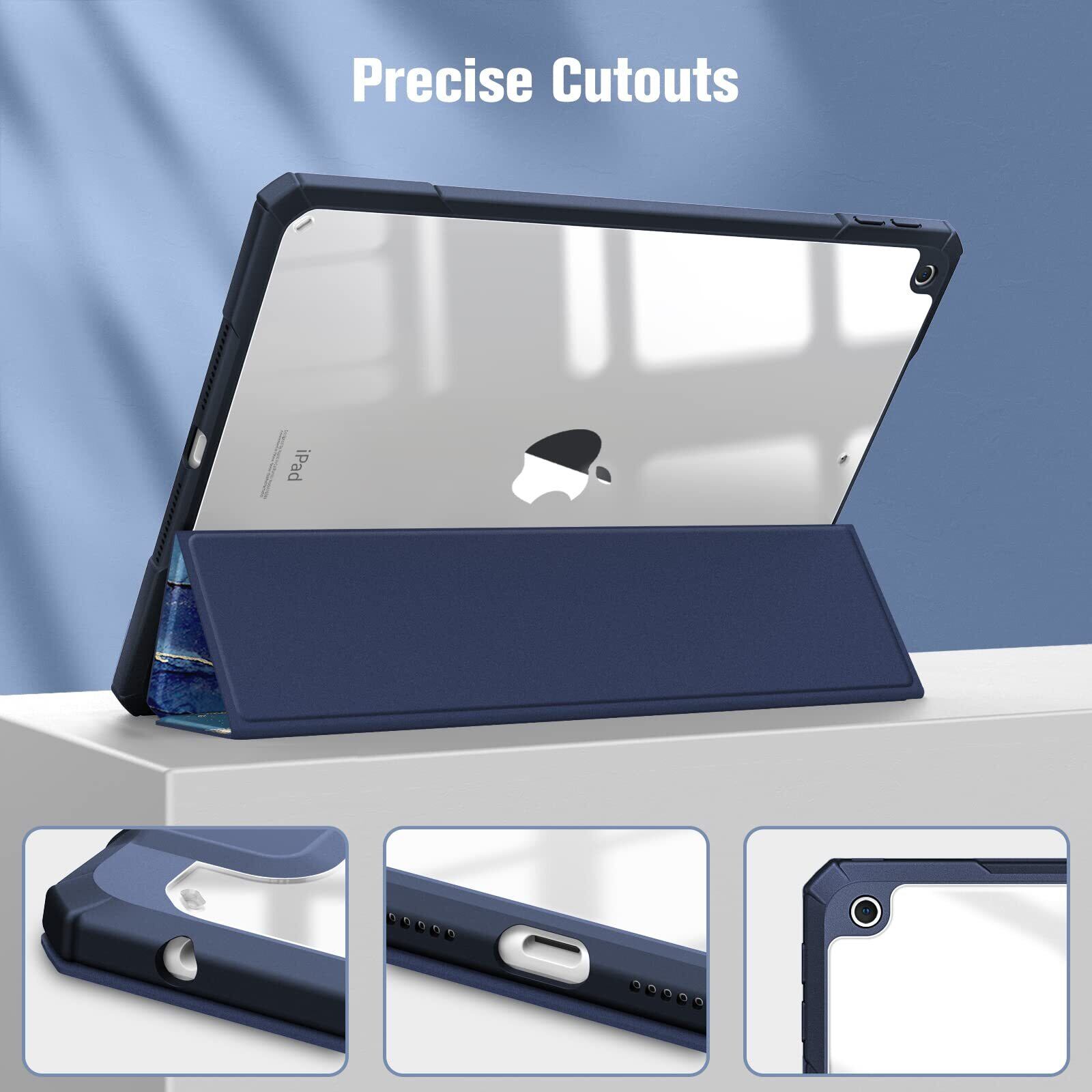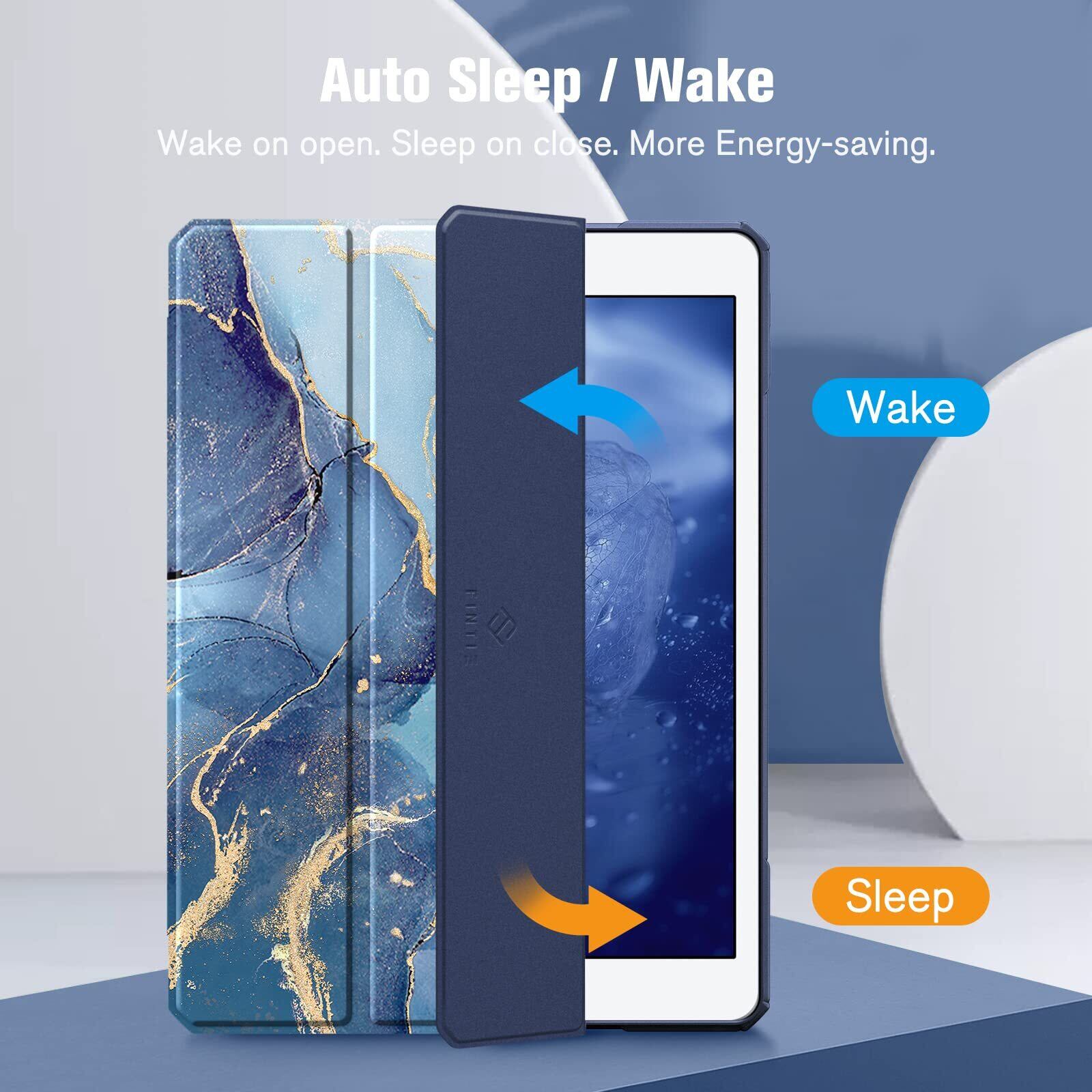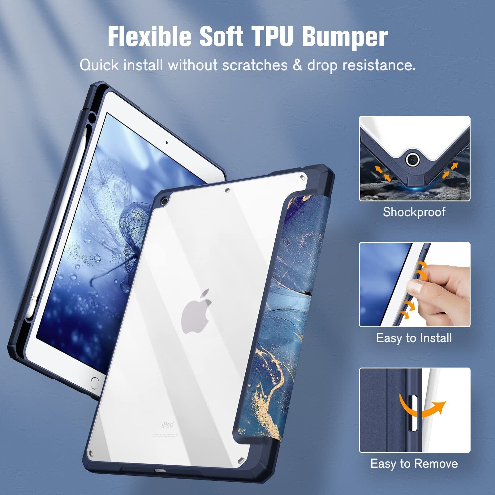 Fintie iPad 10.2 ケース iPad 第9 / 8 / 7世代 ケース 2021 2020 2019 透明バックカバー Apple Pencil 収納可能 三つ折スタンド スリープ機能 軽量 薄型 傷つけ防止 PU合成レザー TPU (モデル番号A2602、A2603、A2604、A2605)(柄 X マーブルブルー)