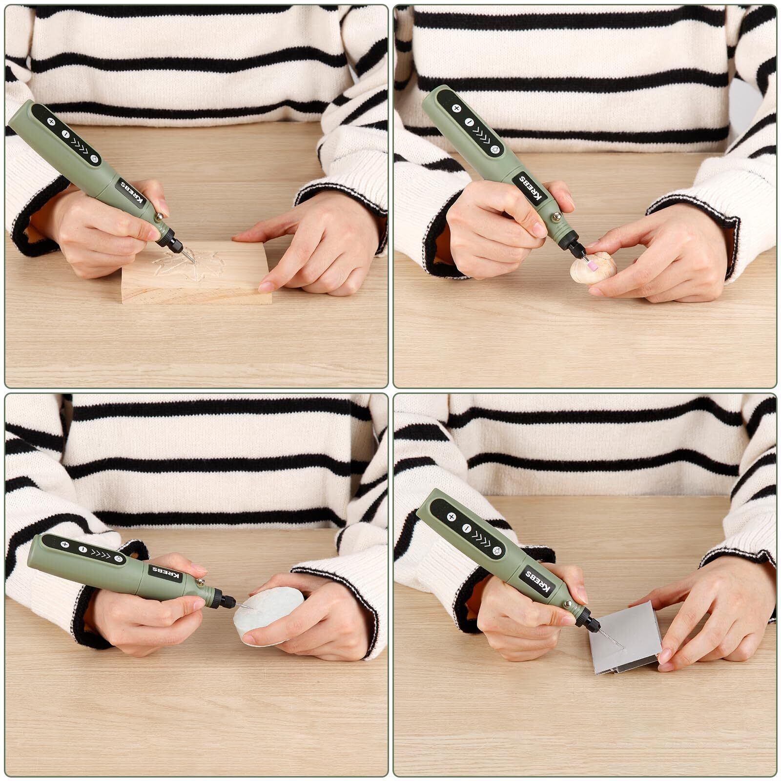 KREBS(クレブス) 充電ミニルーター(リューター)3.6V 電動ルーター 軽量 5段変速 最高18000rpm高速回転 ビット31点セット 照明ライト TYPE-C 充電式 コードレス 彫刻/研磨/切削/穴あけ/汚れ落とし/つや出し DIY軽作業向け