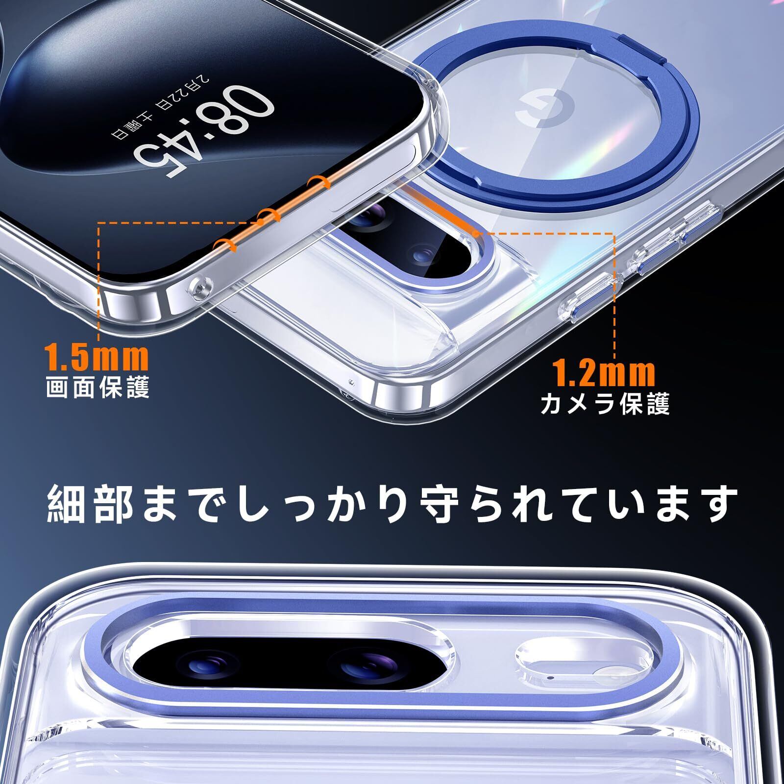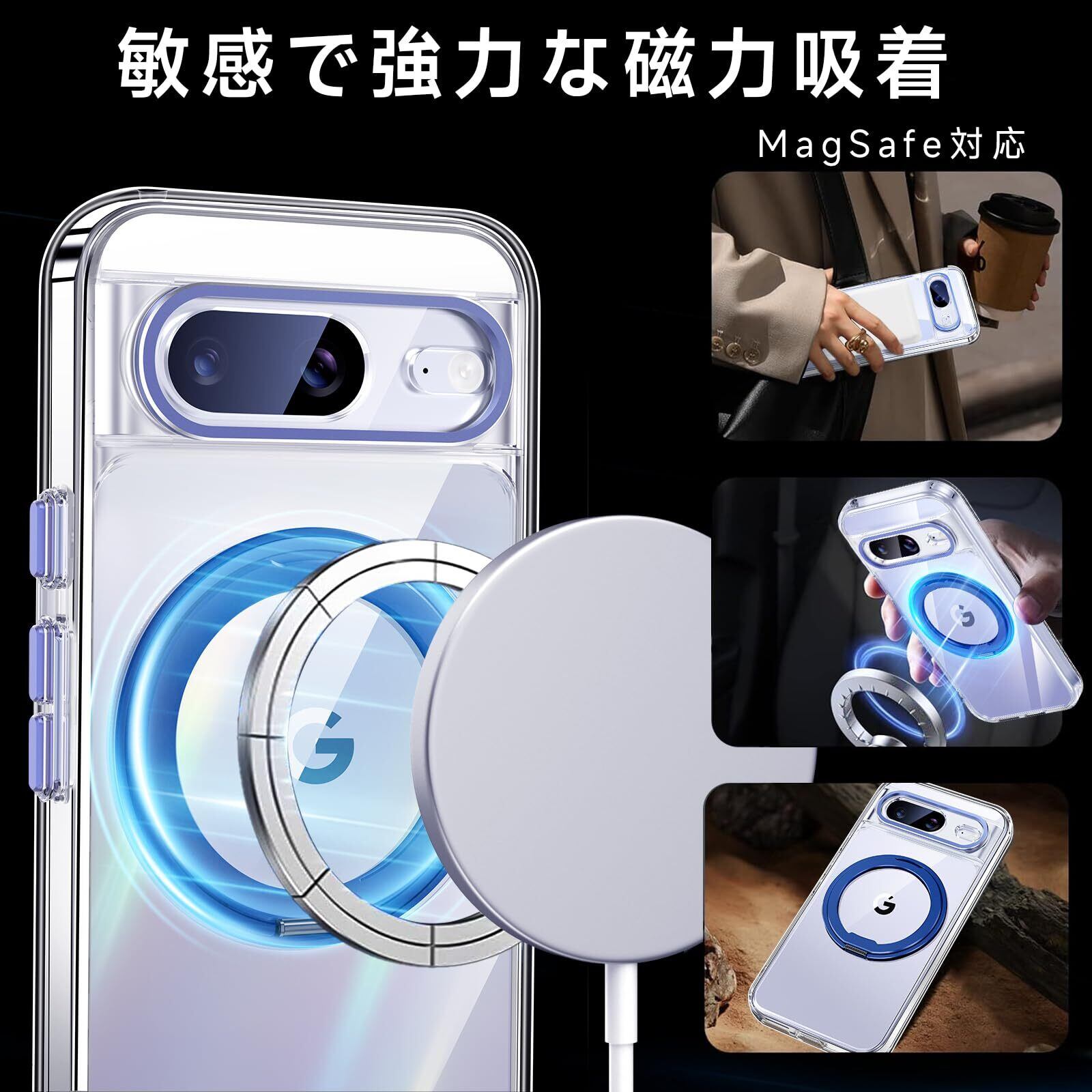【米軍MIL規格・Magsafe対応】Google Pixel 8 用 ケース MagSafe対応 リング360°回転スタンド機能 縦横両対応 透明 黄ばみ防止 ワイヤレス充電 ピクセル8 スマホケース レンズ保護 耐衝撃 携帯カバー グーグルピクセル8 カバー 6.2 インチ マグネット搭載 車載ホルダー マグセーフ対応 おしゃれ (クリアブルー)