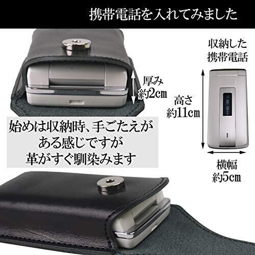 携帯電話ホルスター 本革 ガラケー ケース 腰 革 栃木レザー 携帯電話ケース ベルト通し モバイルケース フィーチャーフォン キャリングケース 縦型 日本製 ブラック