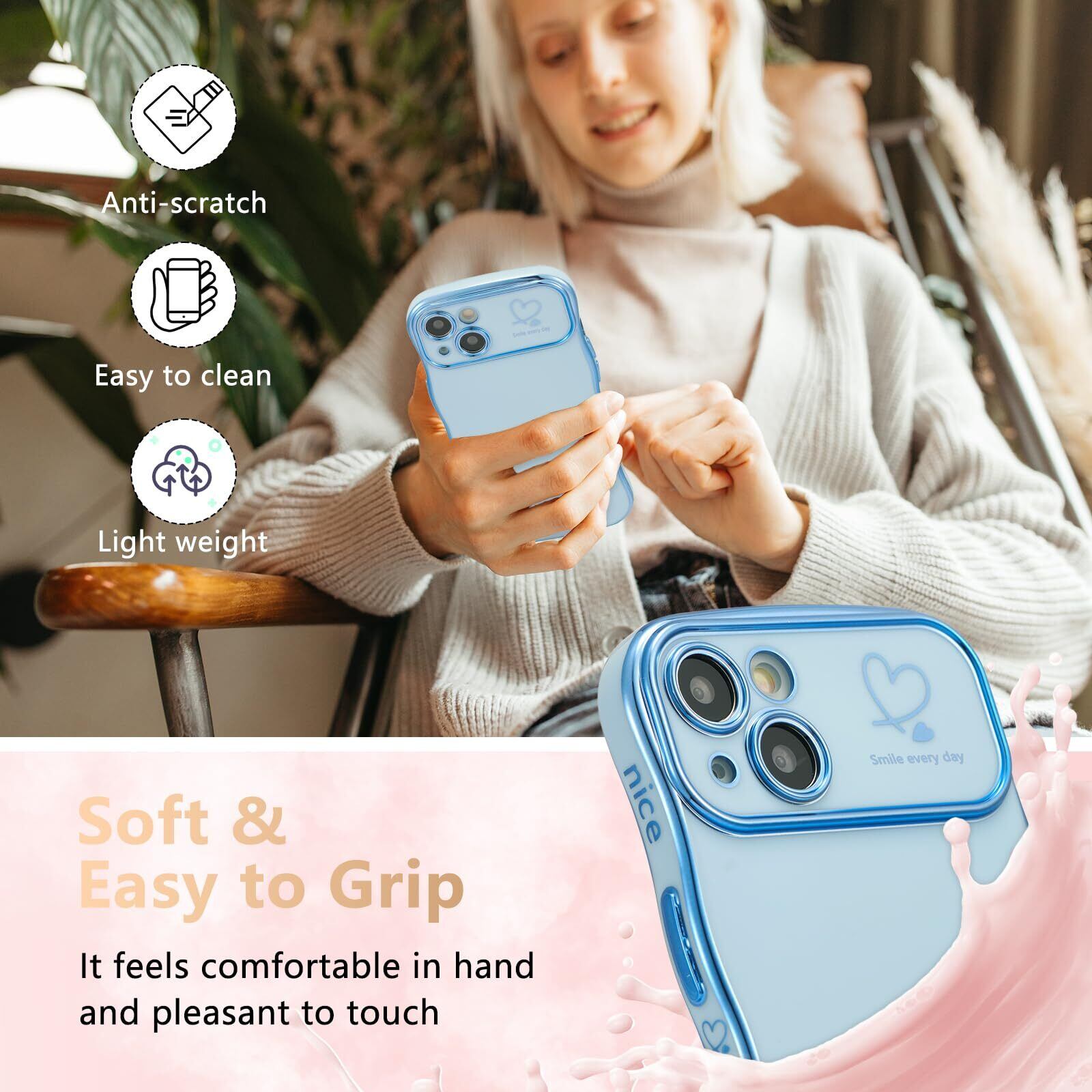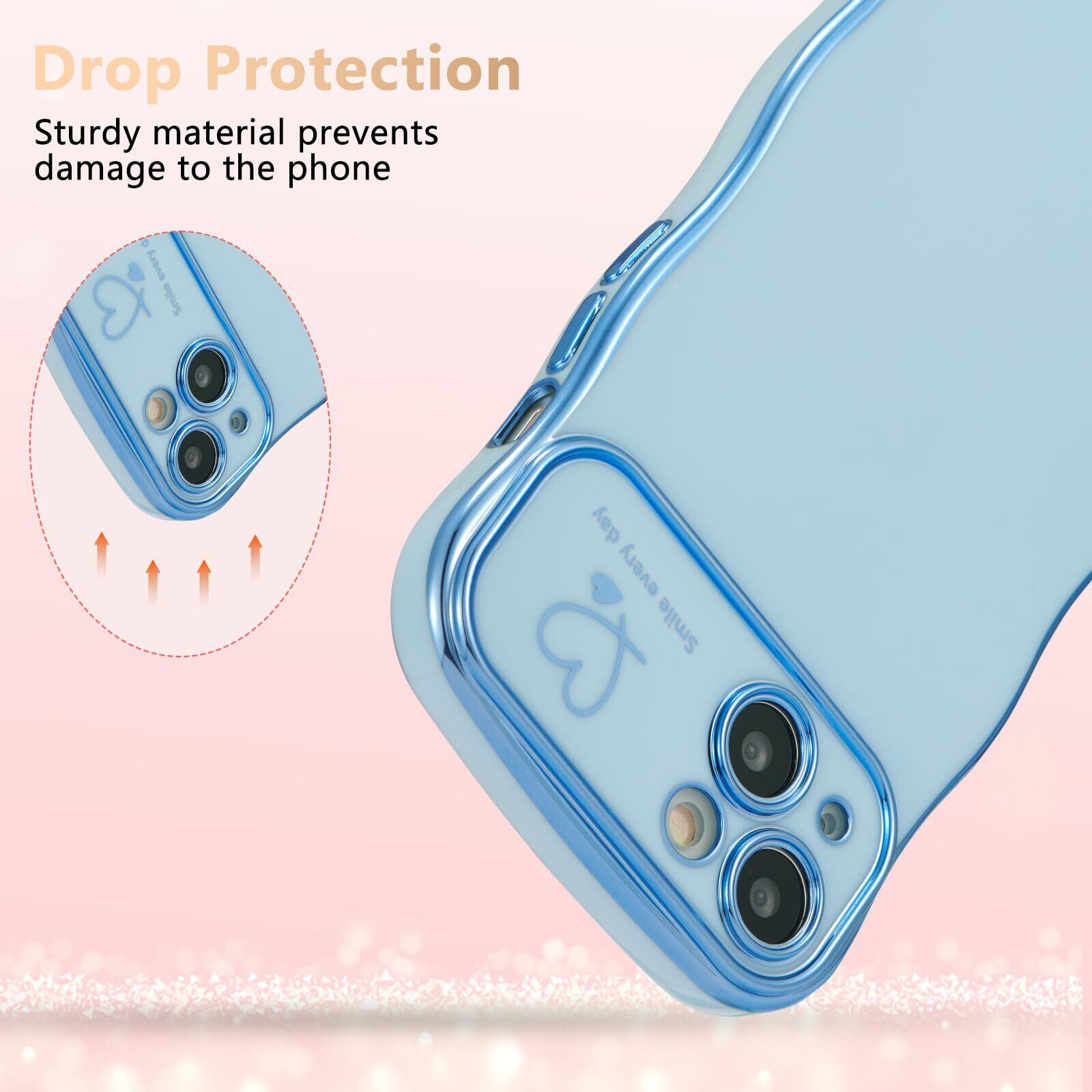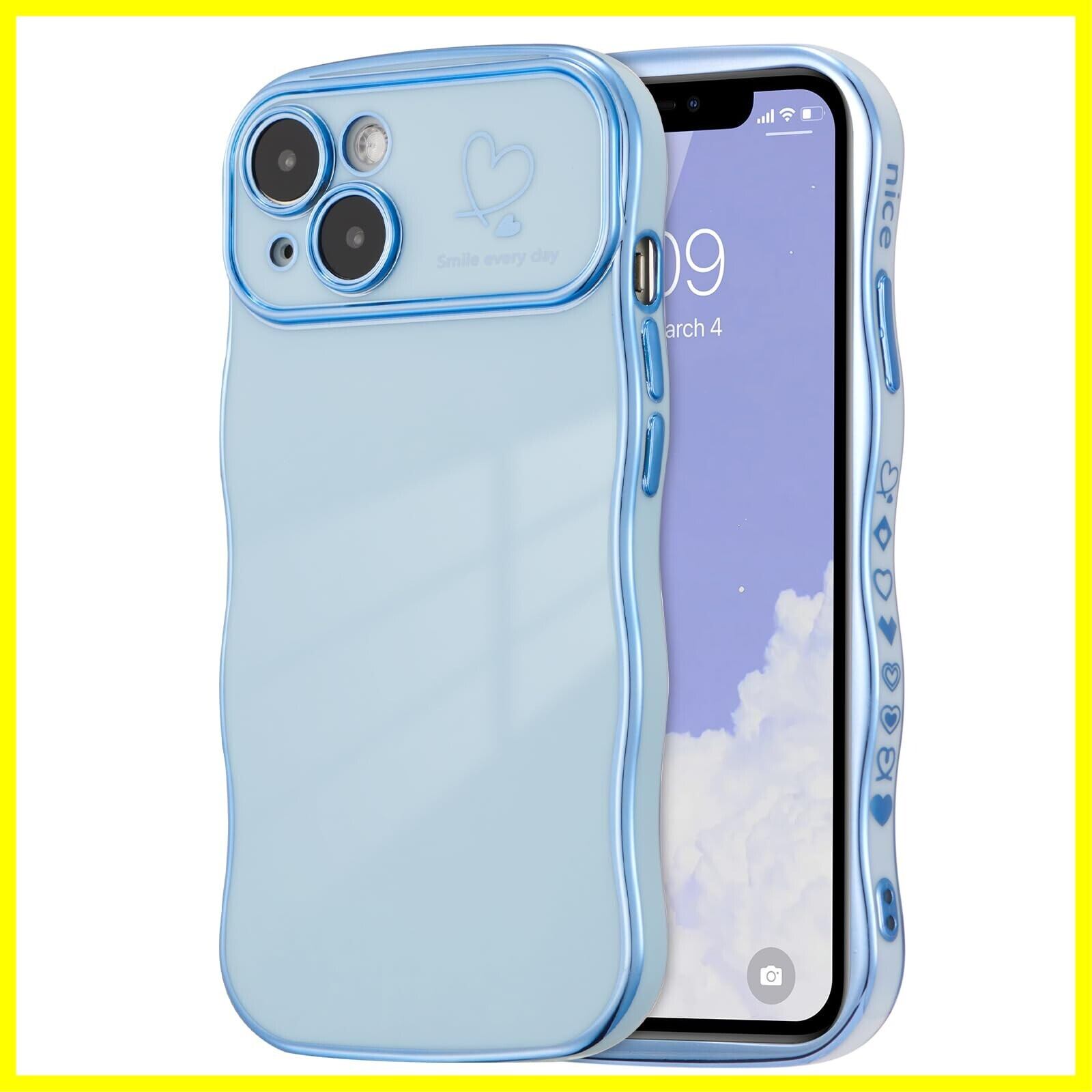 ZTOFERA iPhone 15 用 ハートケース 人気 おしゃれ iPhone 15 波型ケース 柔軟な TPU シリコン ウェーブ デザイン スマホケース メッキ加工 ソフト 軽量 耐衝撃 韓国 可愛い アイフォン 15 ケース 女子 女性 携帯電話カバー ワイヤレス充電対応 (シエラブルー)