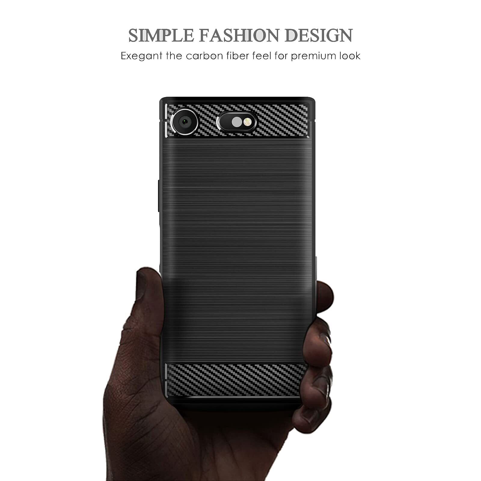 【UNEED】Sony Xperia XZ1 Compact 用の スマホケース SO-02K用の ケース カバー ケース 炭素繊維カバー (素材/TPU) 指紋防止 滑り止め 薄型 軽量 耐衝撃 簡易脱着 ソフトケース カラー:黒