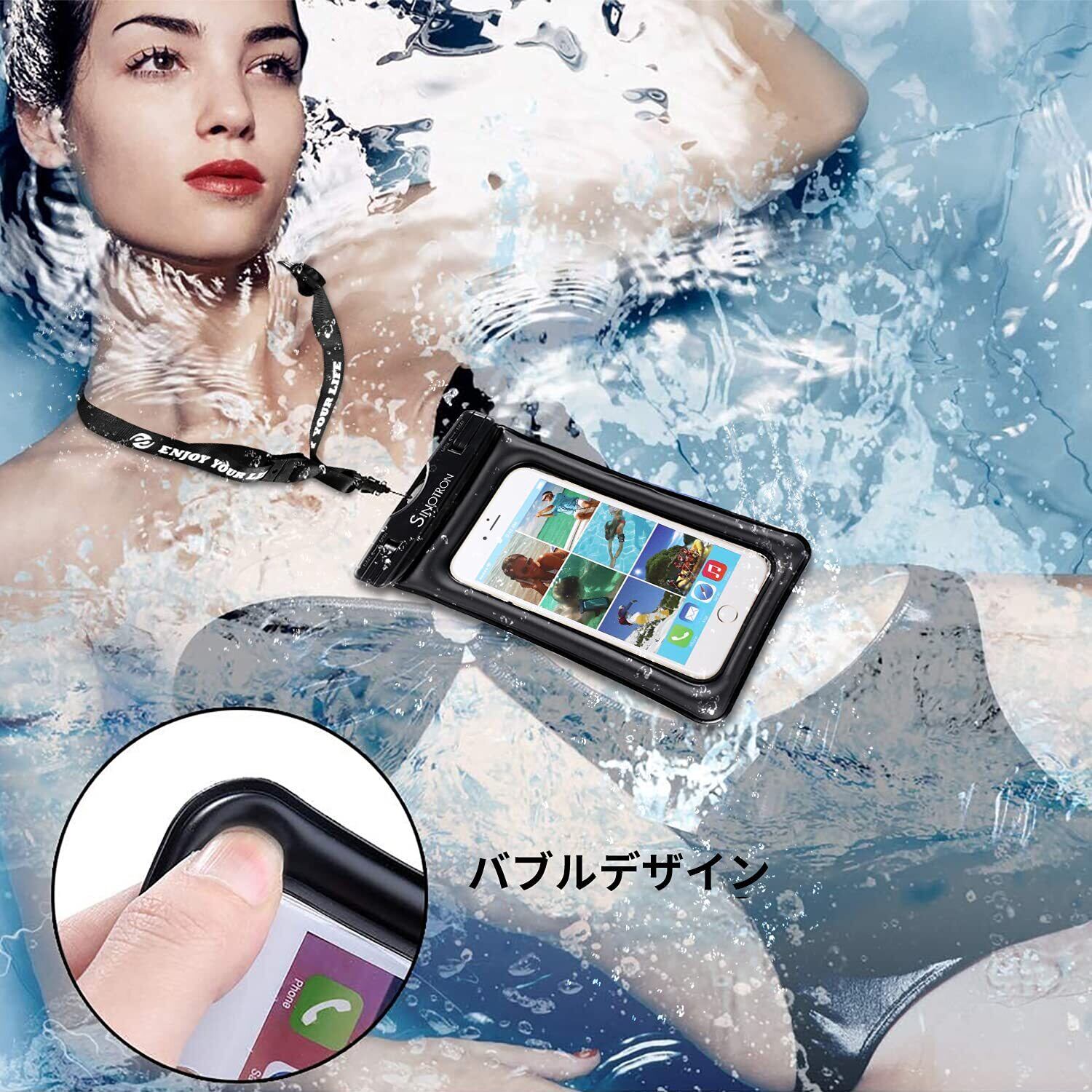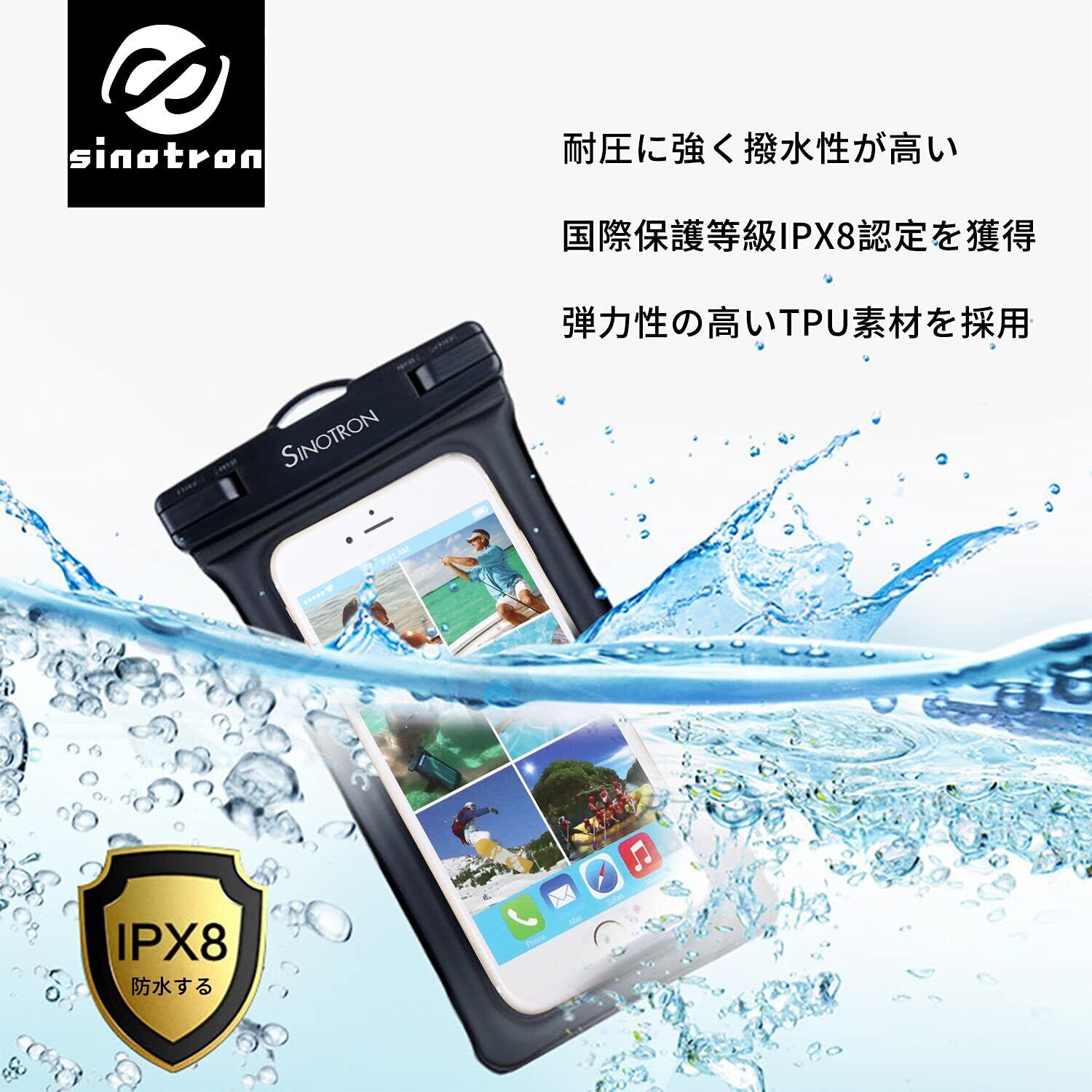 【在庫処分】スマホ用防水ケース 携帯電話防水バッグ 新しい環境保護材料TPU素材採用 国際 IPX8認定 7.2 インチ以下 iPhone 12mini 12シリーズ 11 Pro Max 水中 撮影 タッチ可 風呂 (黒い)