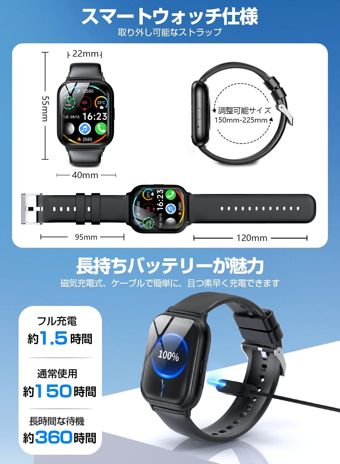スマートウォッチ【2025年業界最新傑作】iPhone対応 アンドロイド対応 最新Bluetooth5.4 通話機能 音楽再生 1.9インチ大画面 活動量計 腕時計 ブラック