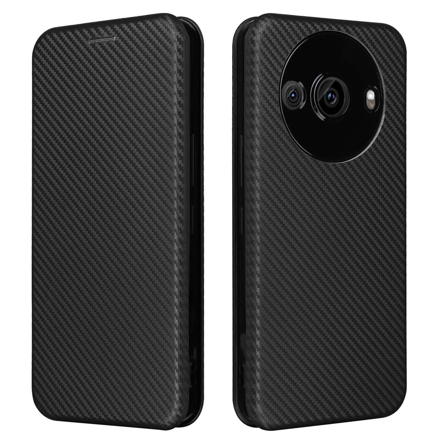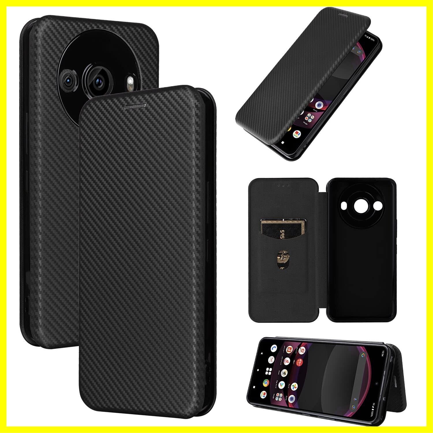 Pelanty for Sharp AQUOS R8 Pro ケース手帳型 炭素繊維調 docomo SH-51D softbank 携帯カバー 背面 軽量薄型 財布型 カード収納 シャープ アクオスR8 Pro sh51d スマホケース マグネット ストラップ付き 耐衝撃 全面保護-ブラック