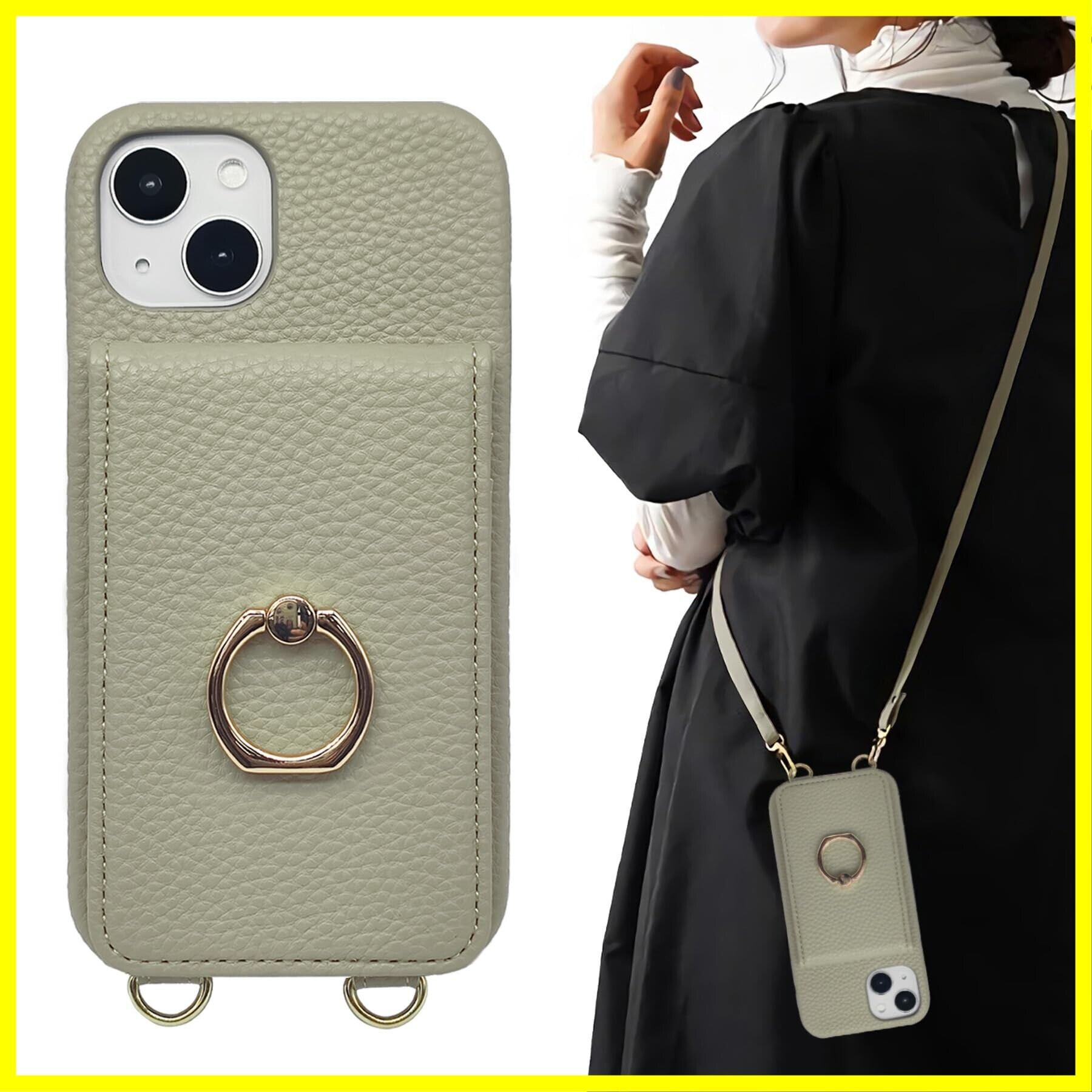 いphone14 用 ケース ショルダー カード収納 リング付 スマホケース for iphone14 ストラップ 落下防止 調節可能な 肩掛け 斜め掛 首掛け 可愛 かわいい おしゃれ スタンド機能 ピーグリーン