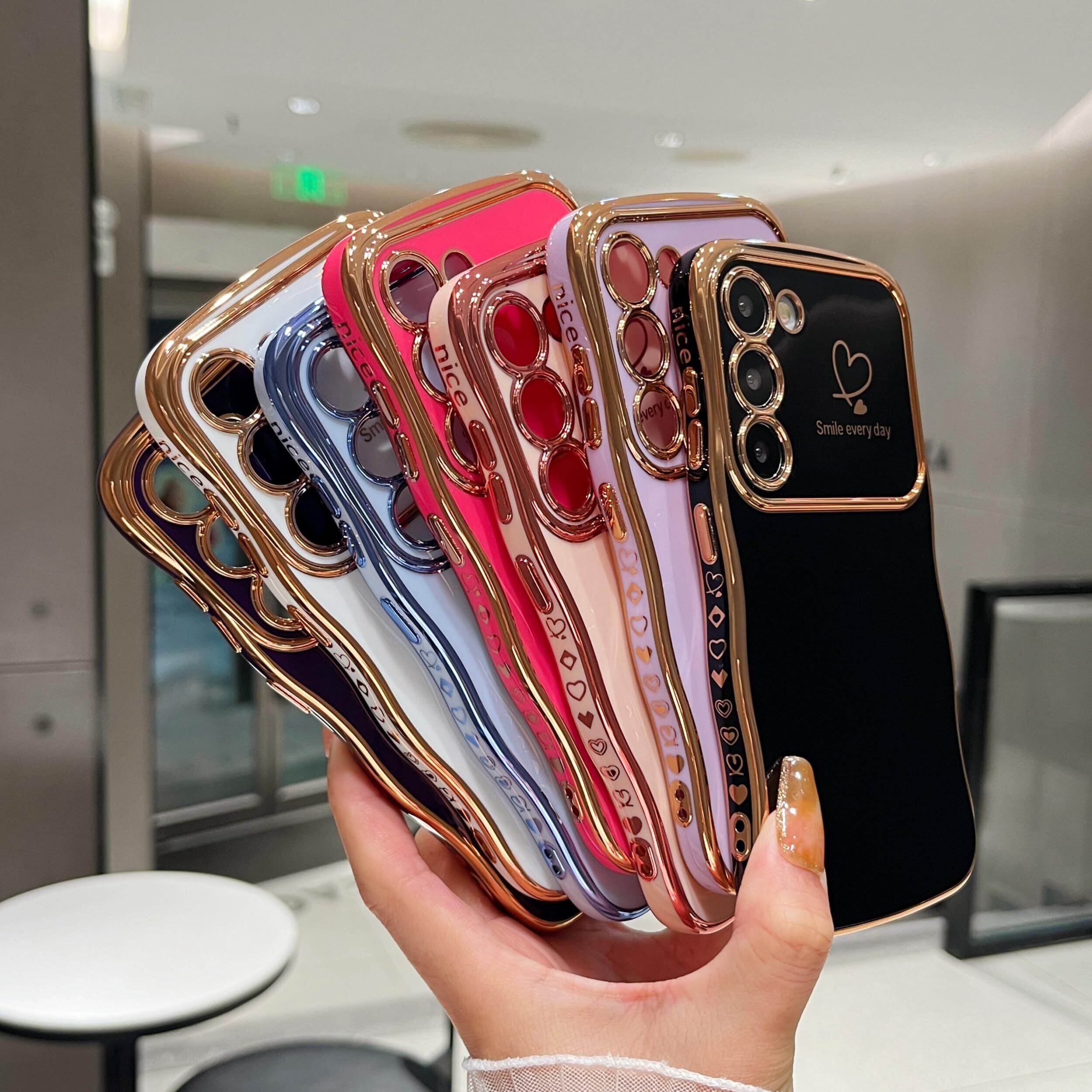 Samsung Galaxy S23に対応、購入前に機種をご確認ください。柔らかく柔軟なtpu素材を使用し、エッジとカメラエッジの周りにメッキ技術を使用しています。カーリーウェーブフレームがエレガントさと快適なグリップ感をプラスし、ラブハートパターンがチャーミングな魅力をさらに引き立てます。縁取りのメッキ加工が、このスマホケースにトレンディでファッショナブルな印象を与え、誰の目にも留まることでしょう。