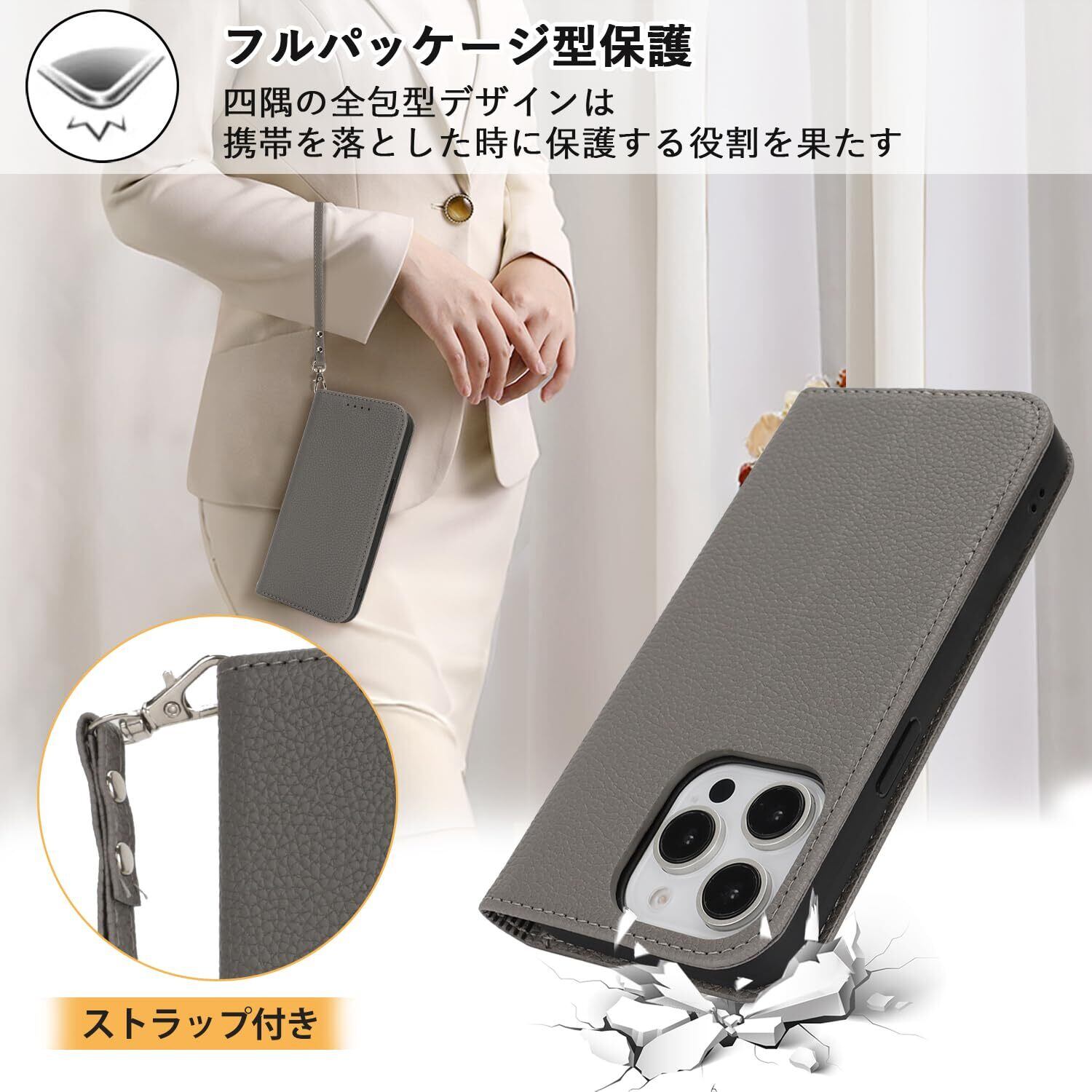 【Hamany】 いphone12 pro max ケース iphone 13 pro max ケース 手帳型 ストラップ カード収納 スタンド機能 アイホン12プロマックスケース マグネット式 レザー スマホケース iphone13プロマックス 耐衝撃 耐久性 耐摩擦 -グレー