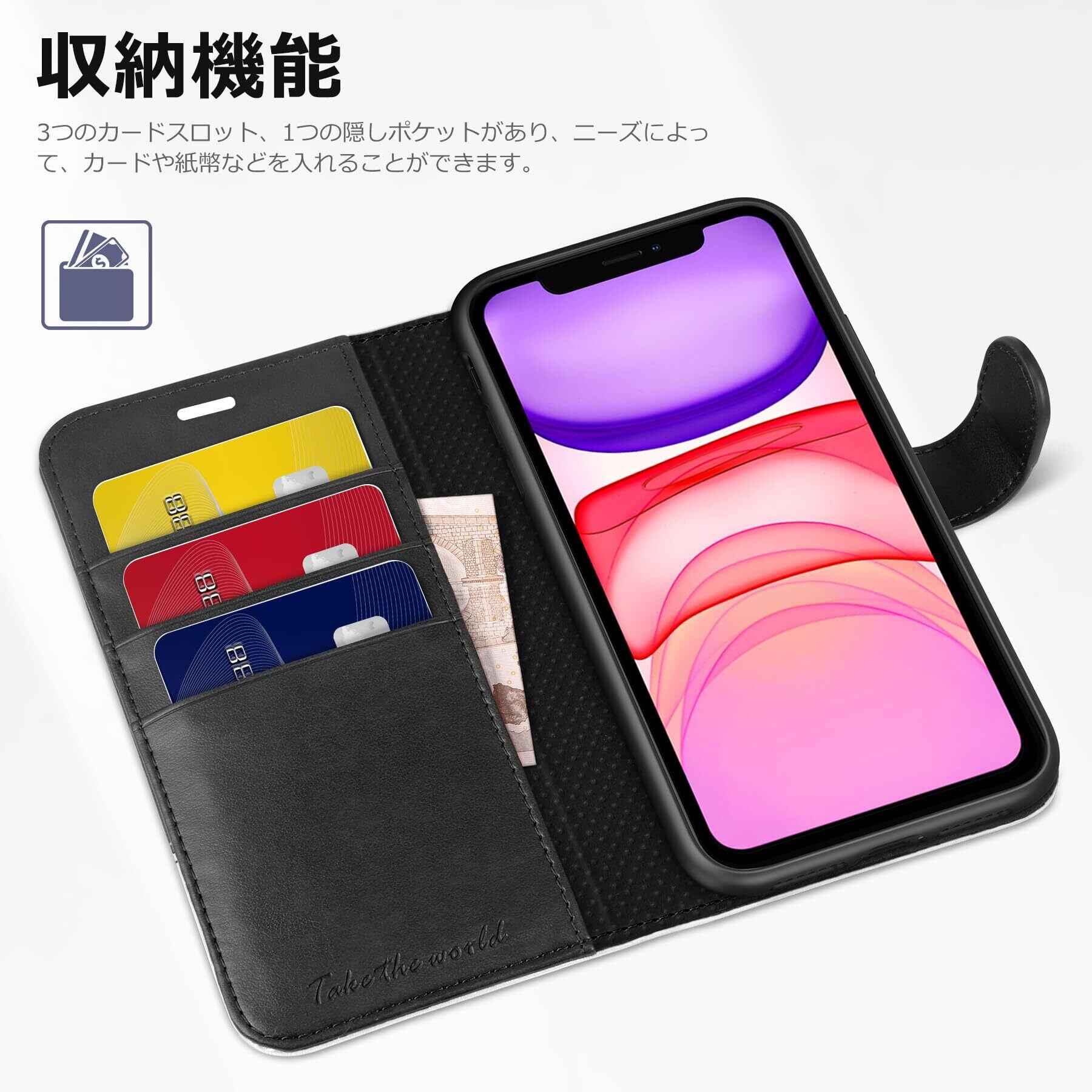【全面保護】高品質の合皮を採用して、見た目も肌触りもいいです。留め具付きの全面保護で、傷などからiPhone 11本体をガードしています。プラスチックは伝統の硬質素材の代わり、柔軟性に富むTPU素材を採用して、割れにくいで、衝撃からiPhone本体を守ります。