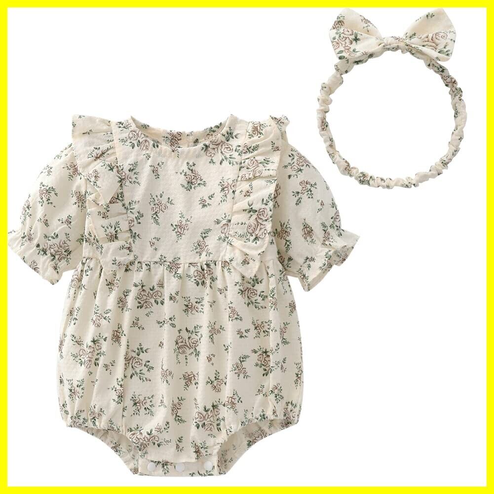 [Reegoo Peter] ベビー服 女の子 ボディスーツ 夏 ロンパース 半袖 赤ちゃん服 綿100% 新生児服 ヘアバンド かわいい 59 66 73 80