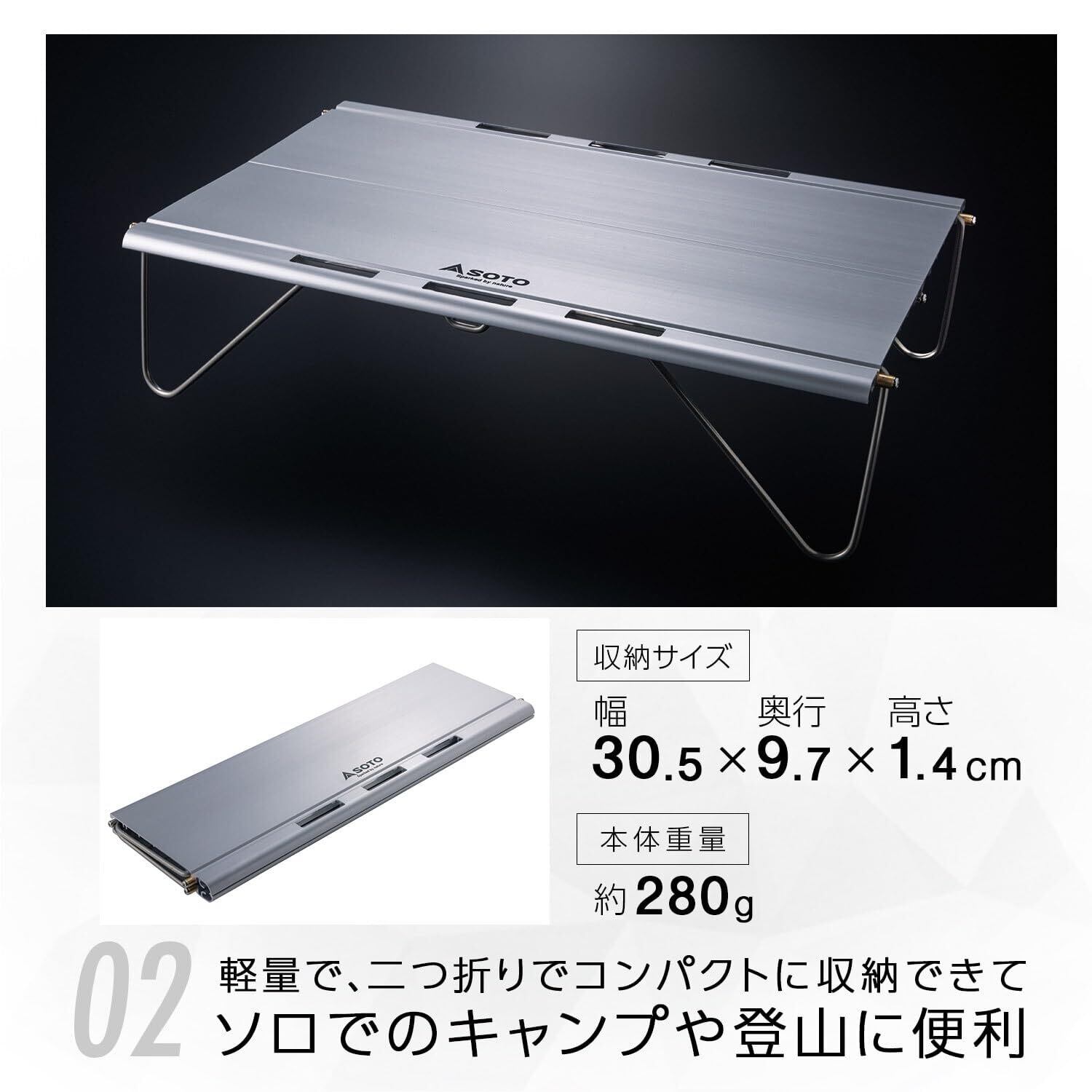 ●軽量化を図る登山者に向けた薄さ・軽さ・強度を兼ね備えたミニテーブル。